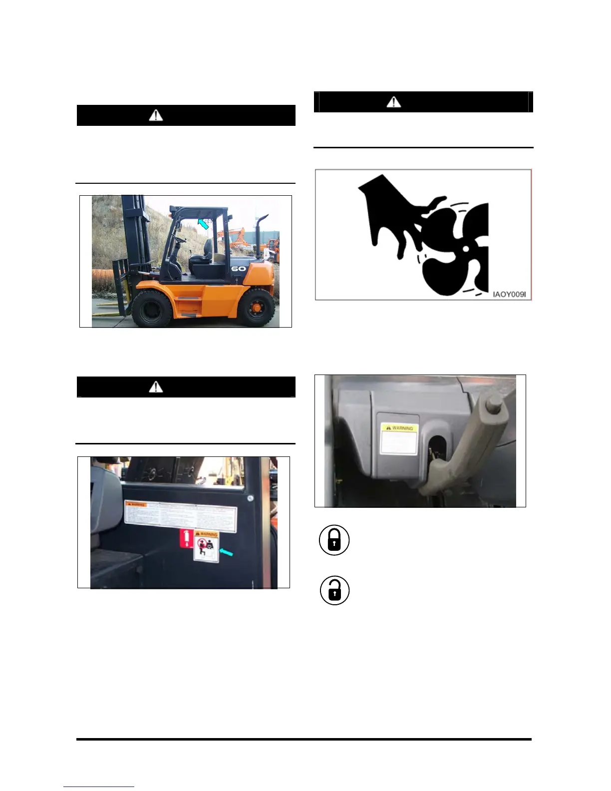 leaving the lift truck and when starting the engine. If