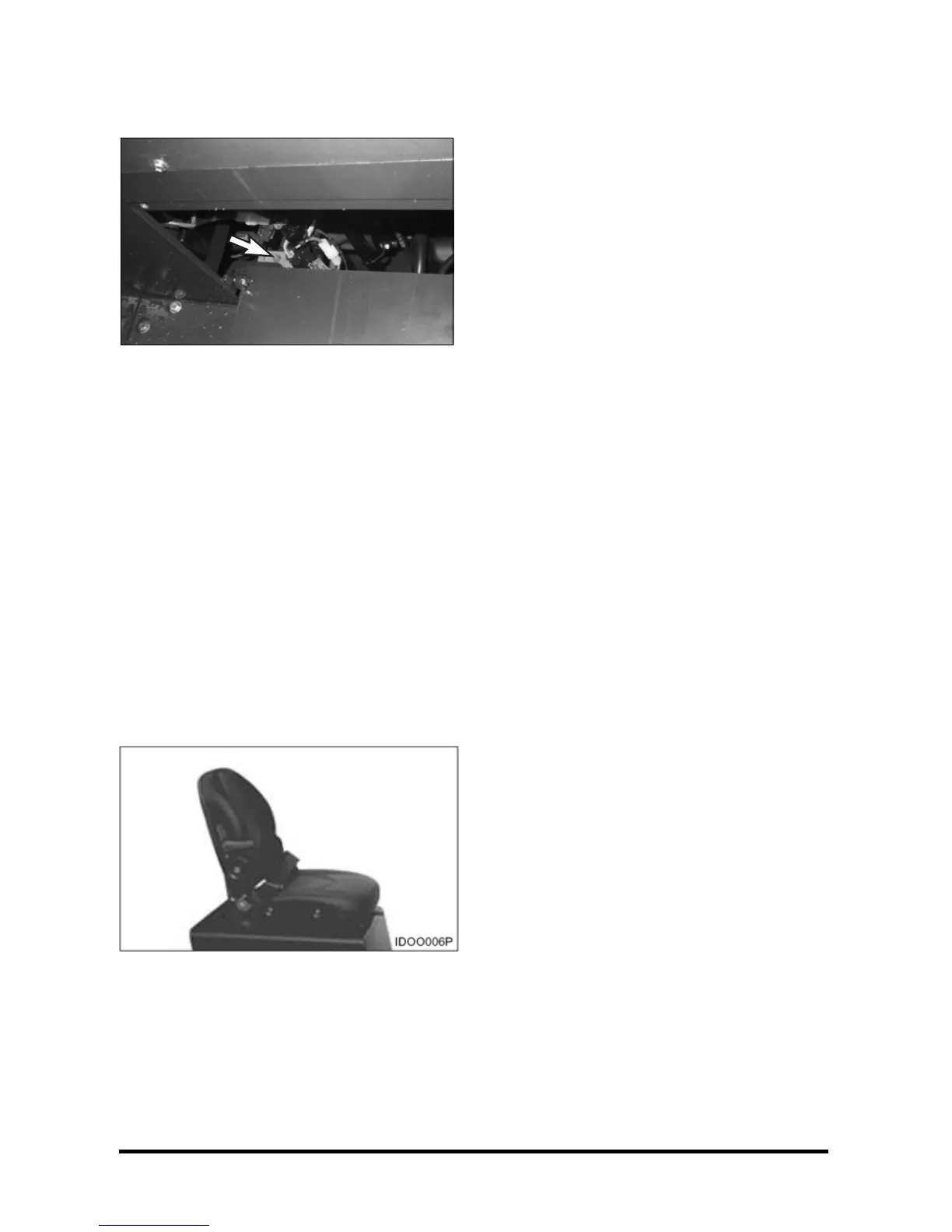 operator's back against seat back.