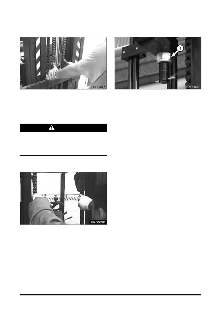 3. Make adjustment anchor nut (1) for equal chain