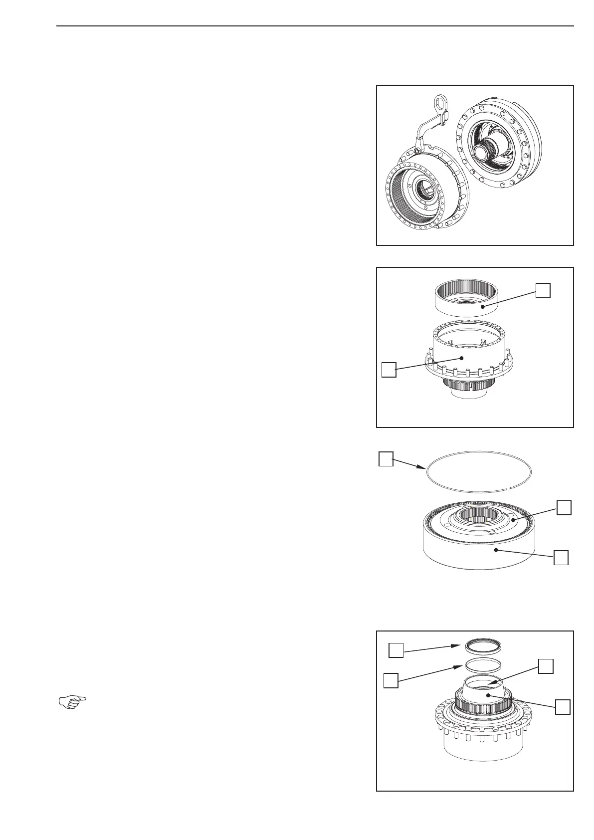 Unsnap circlip (1) and separate the ring gear carrier (2) from