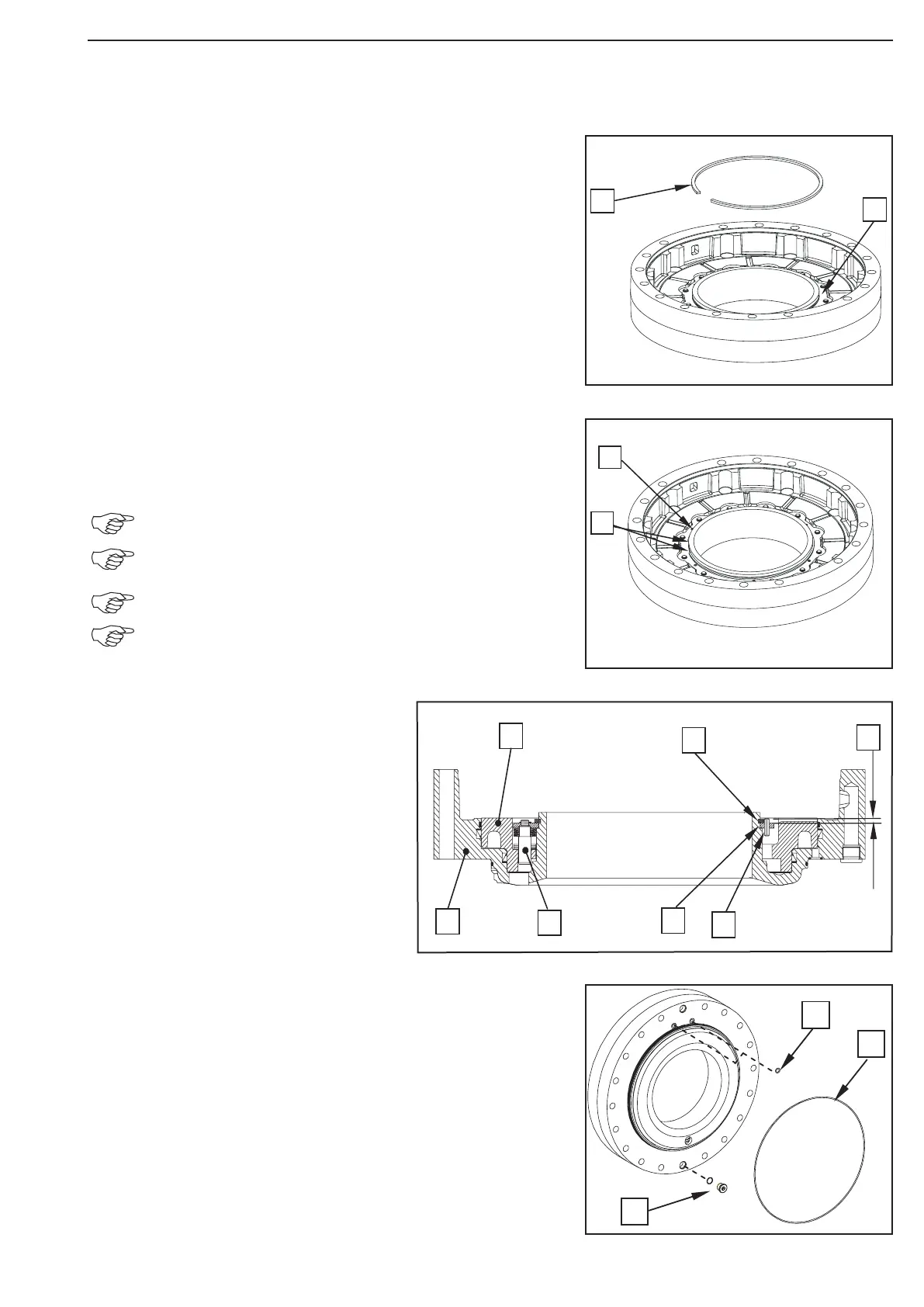Drive 6 slotted pins (1) for locking of the circlip into the bore