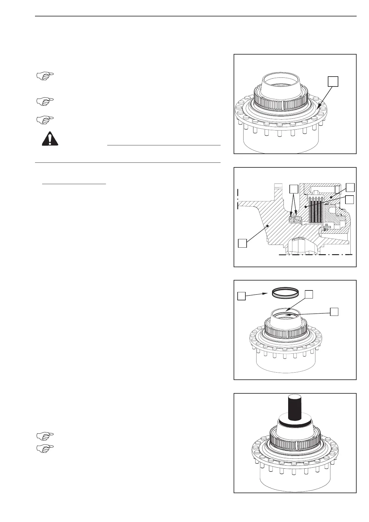 Roller bearing cpl. (1), ring (2) and shaft seal (3) into the hub.