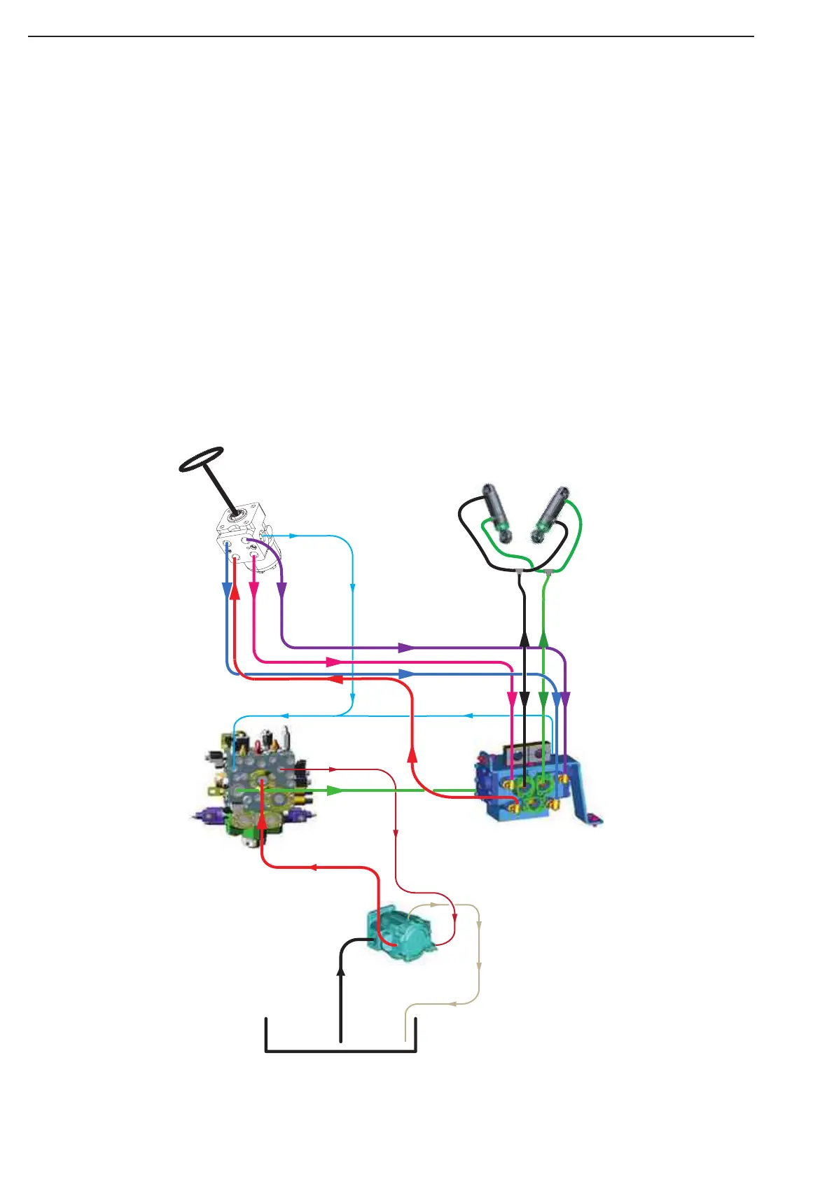 If the steering wheel is not turned, the entire oil flow is directed to the tipping valve.
