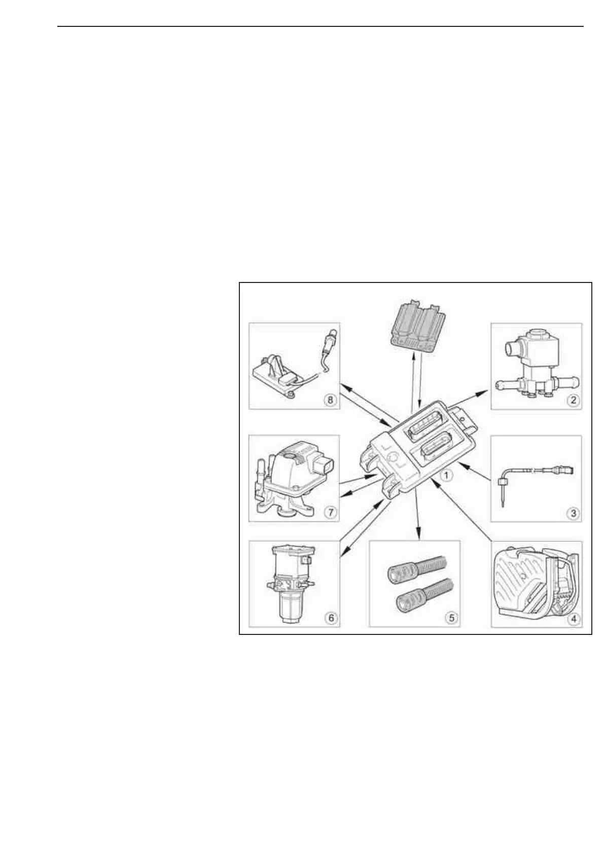 The control system consists of a control unit (EEC3), NOx sensor, temperature sensor for exhaust gases,