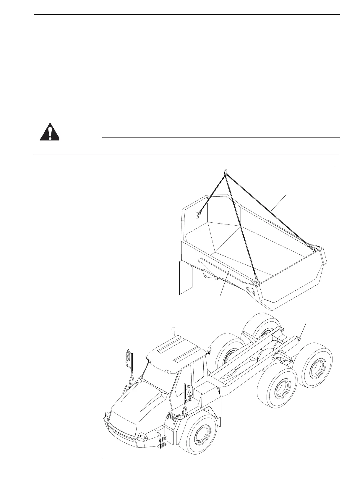 Attach the lifting device in all three dumper body lifting points, and lift to release the weight on the tilt bearings.