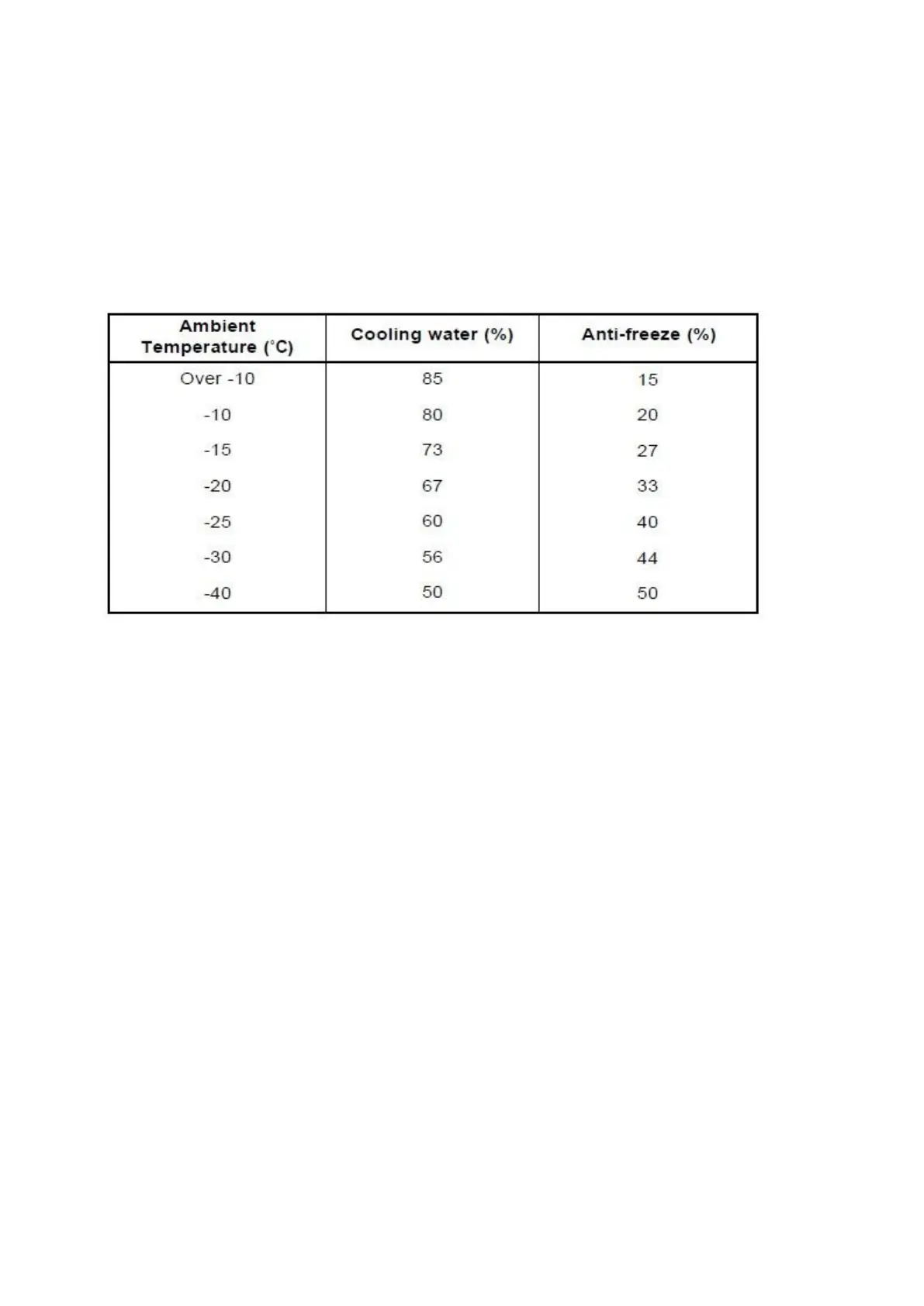Amount of Anti-freeze in winter
