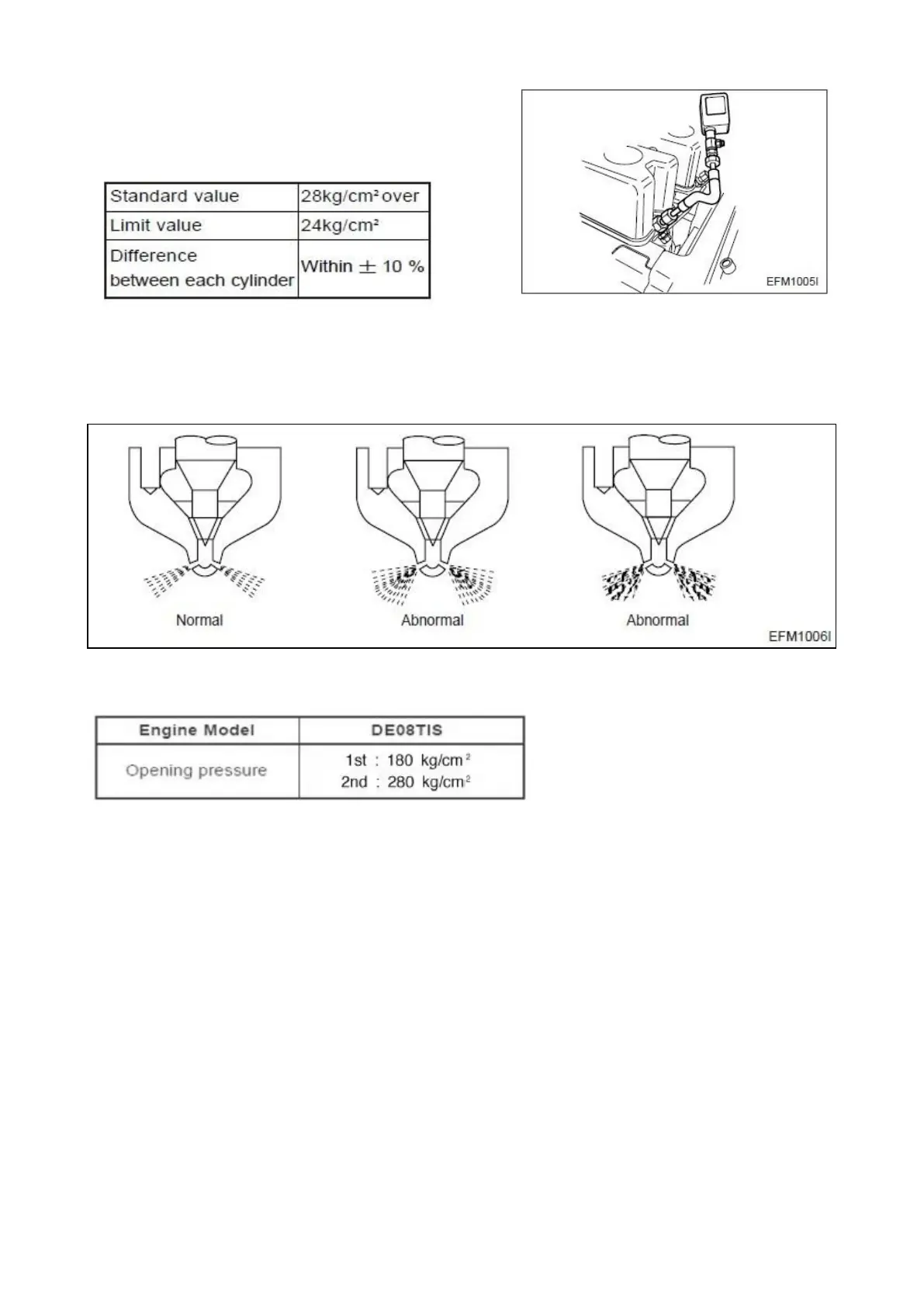 If the inspected injection pressure is less than the specified value, adjust using the adjusting shims.