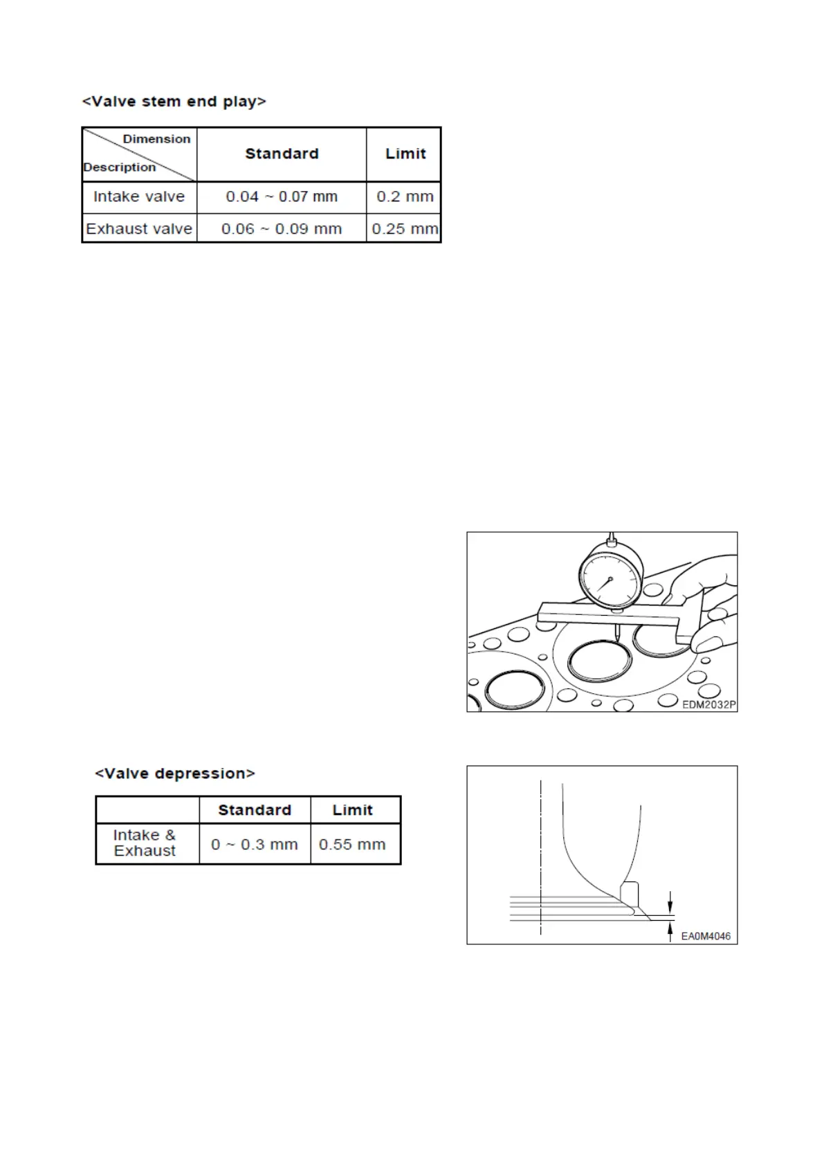 head, and check the amount of depression of the valve