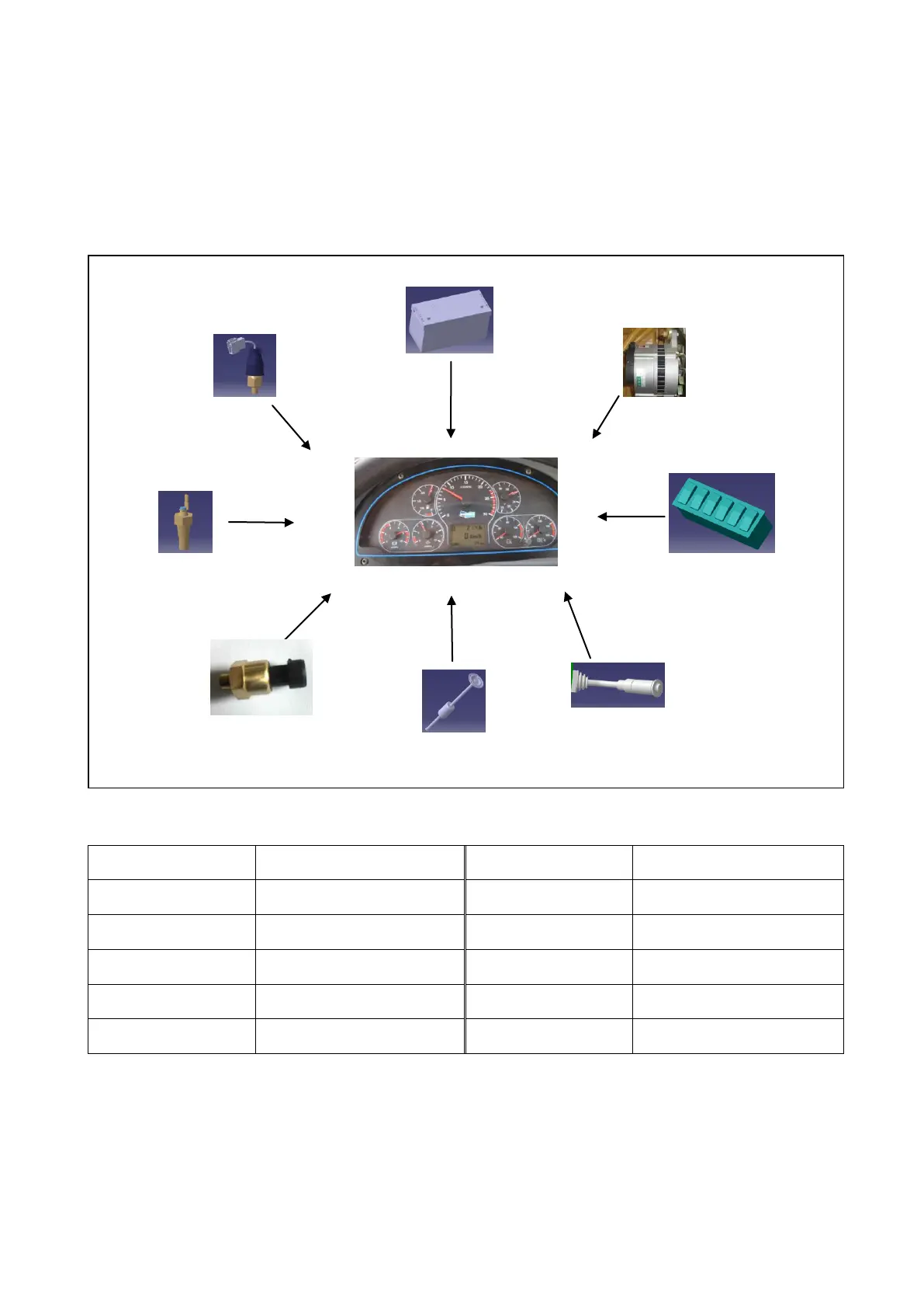 Monitoring system will process information collected from all sensors, the instrument panel will indicate