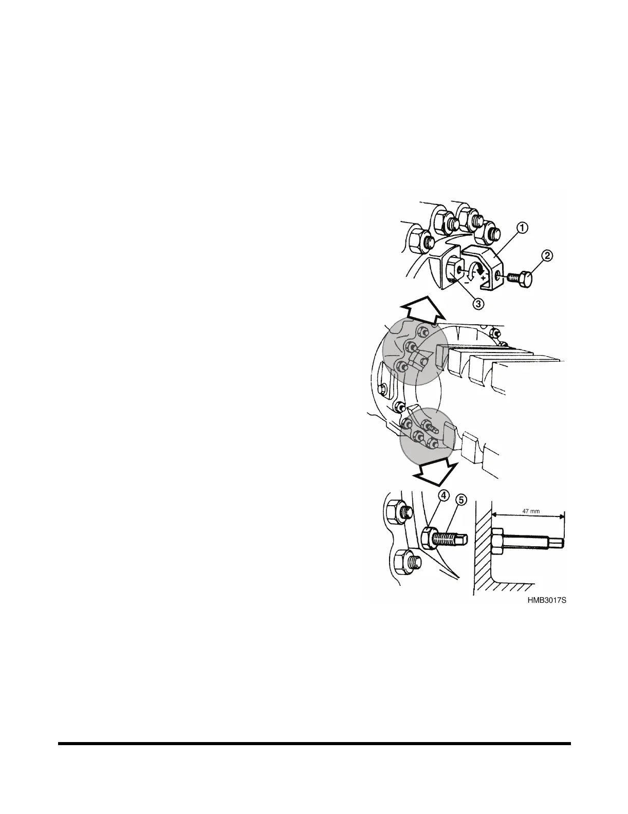 The initial setting of adjusting bolt is 47 mm and should be
