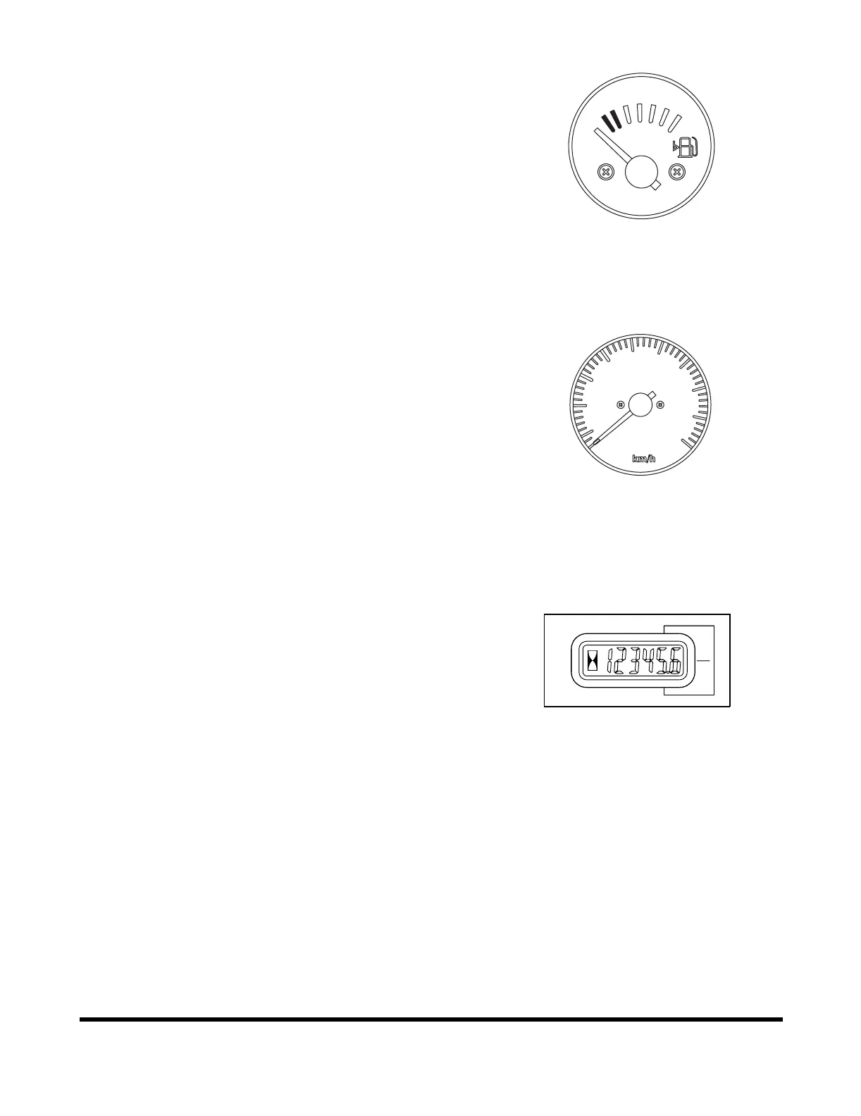 "E" (red zone), approximately 11.7l (3 U.S. gal.) of fuel