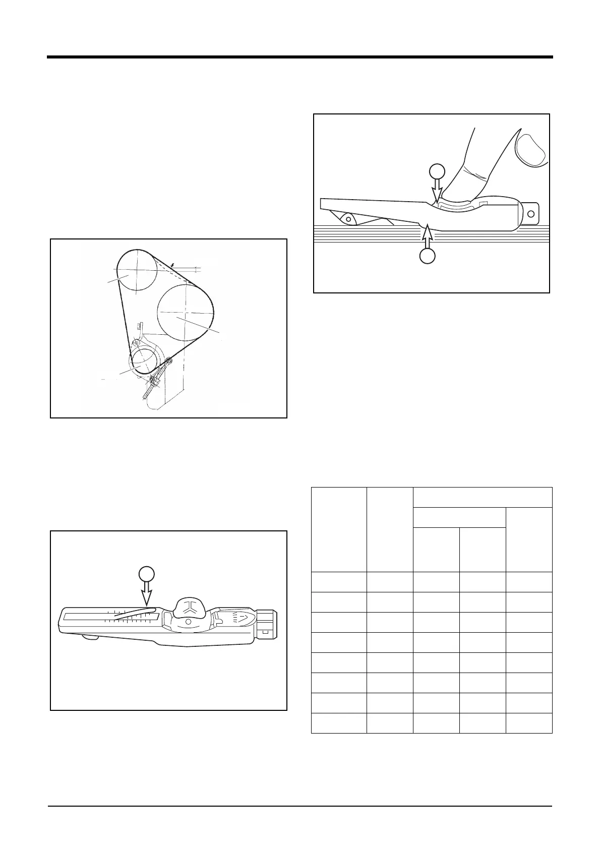 between pulleys, if it is pressed by 10~15mm, it is normal.