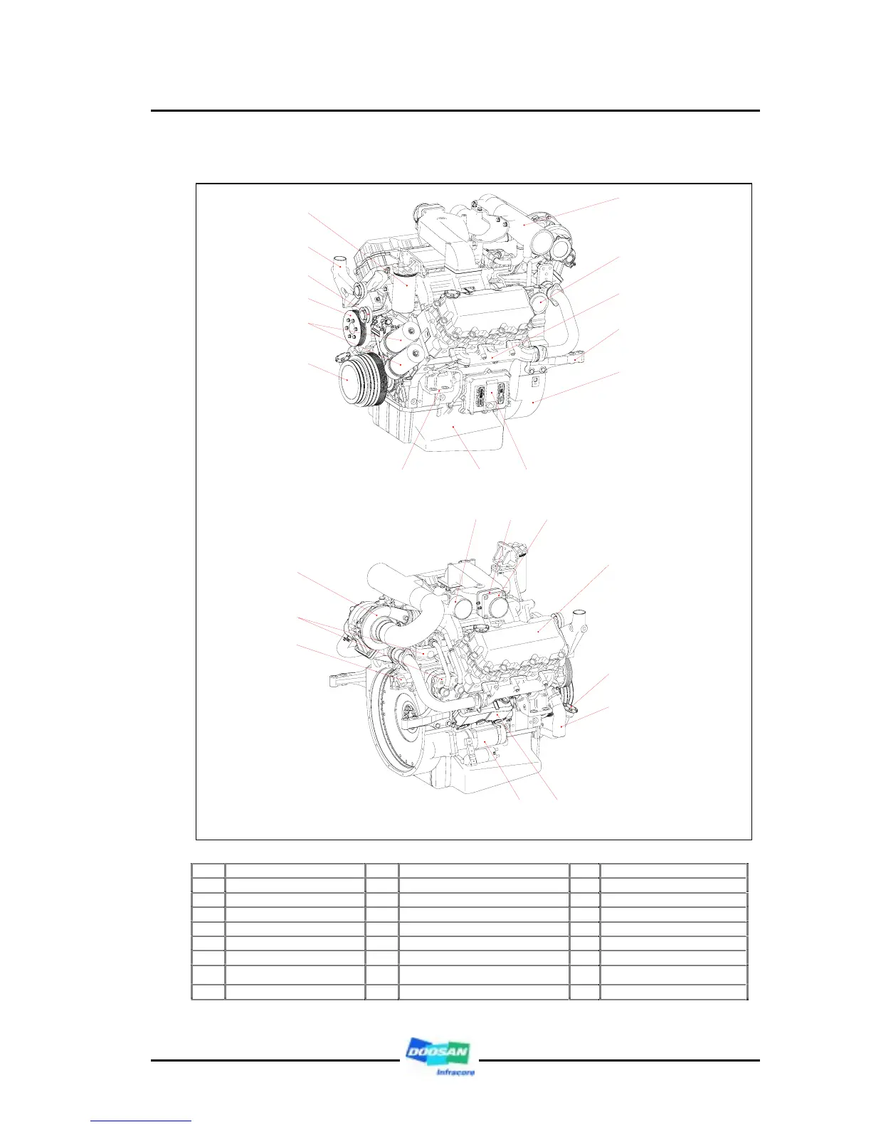 3 Water pump pulley 11 Flywheel housing 19 Air heater