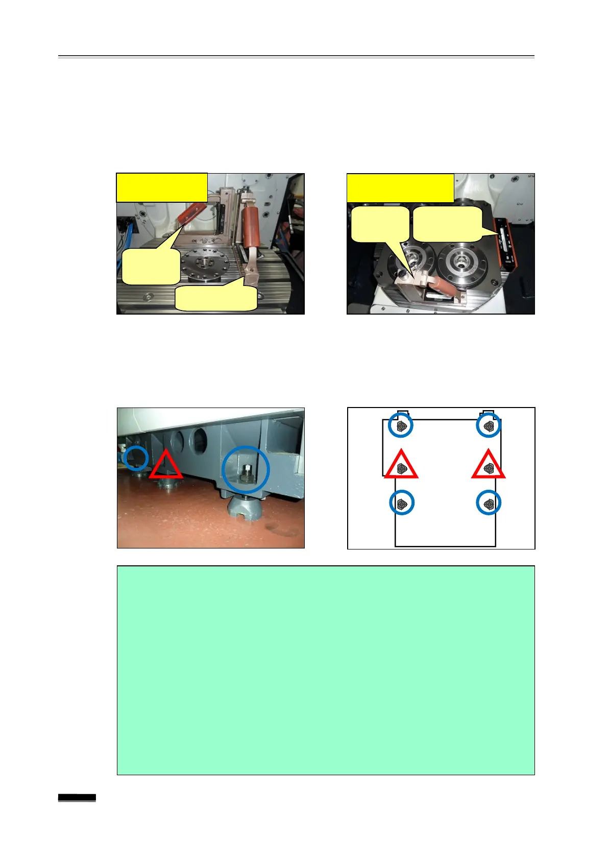 Adjust the 4 remaining level bolts until X and Y direction level on the table becomes “0. ”
