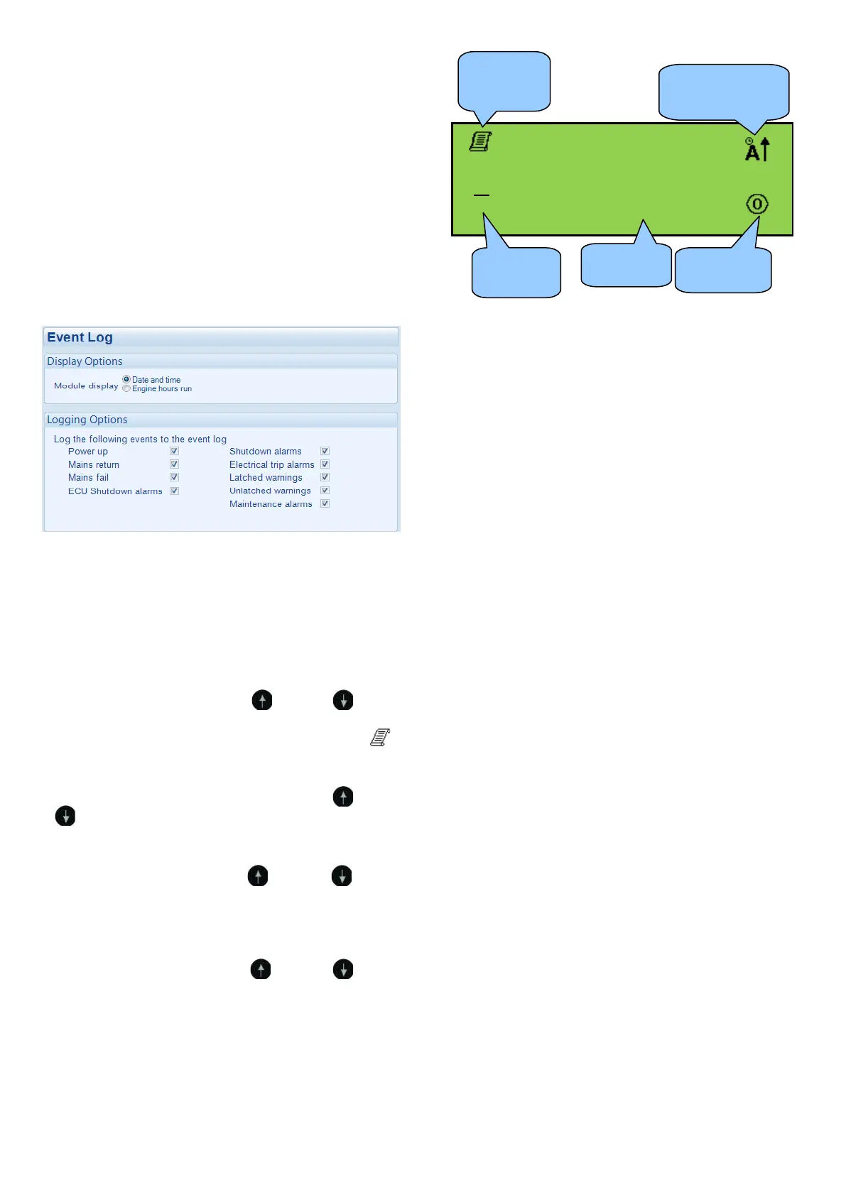 To view the event log, press both (up) and (down)