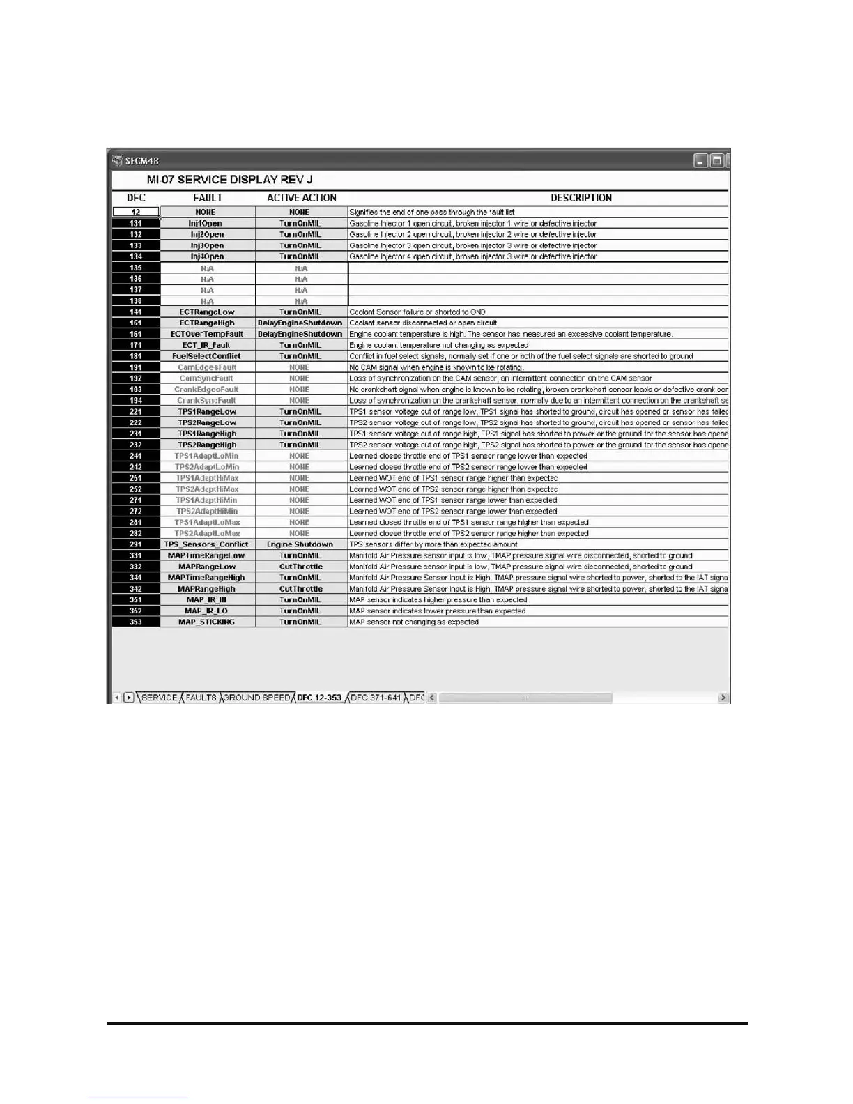 displayed in yellow have been enabled on the MI-07 system. Faults that appear in grey are included for future