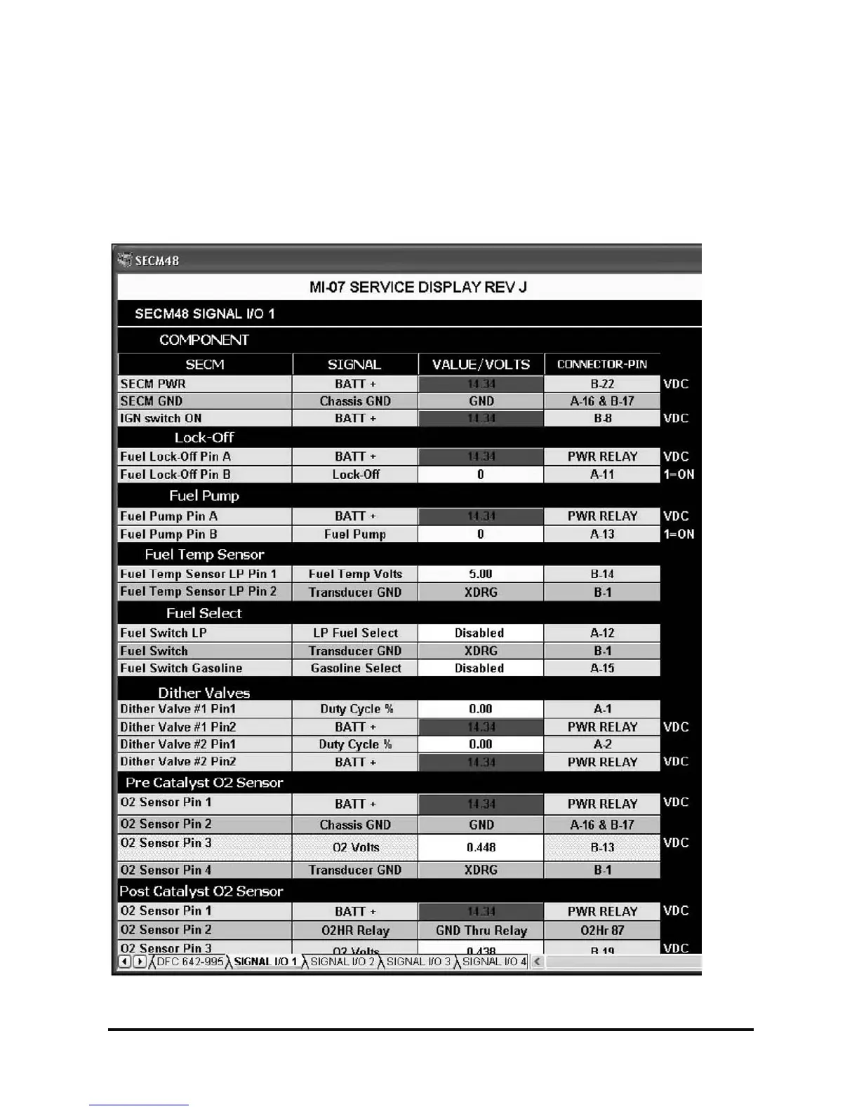 display SECM inputs and outputs to the various system sensors, solenoids, relays and drivers. Components