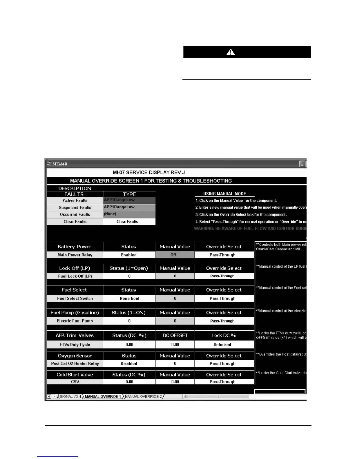 Figure 14. Manual Override Screen 1
