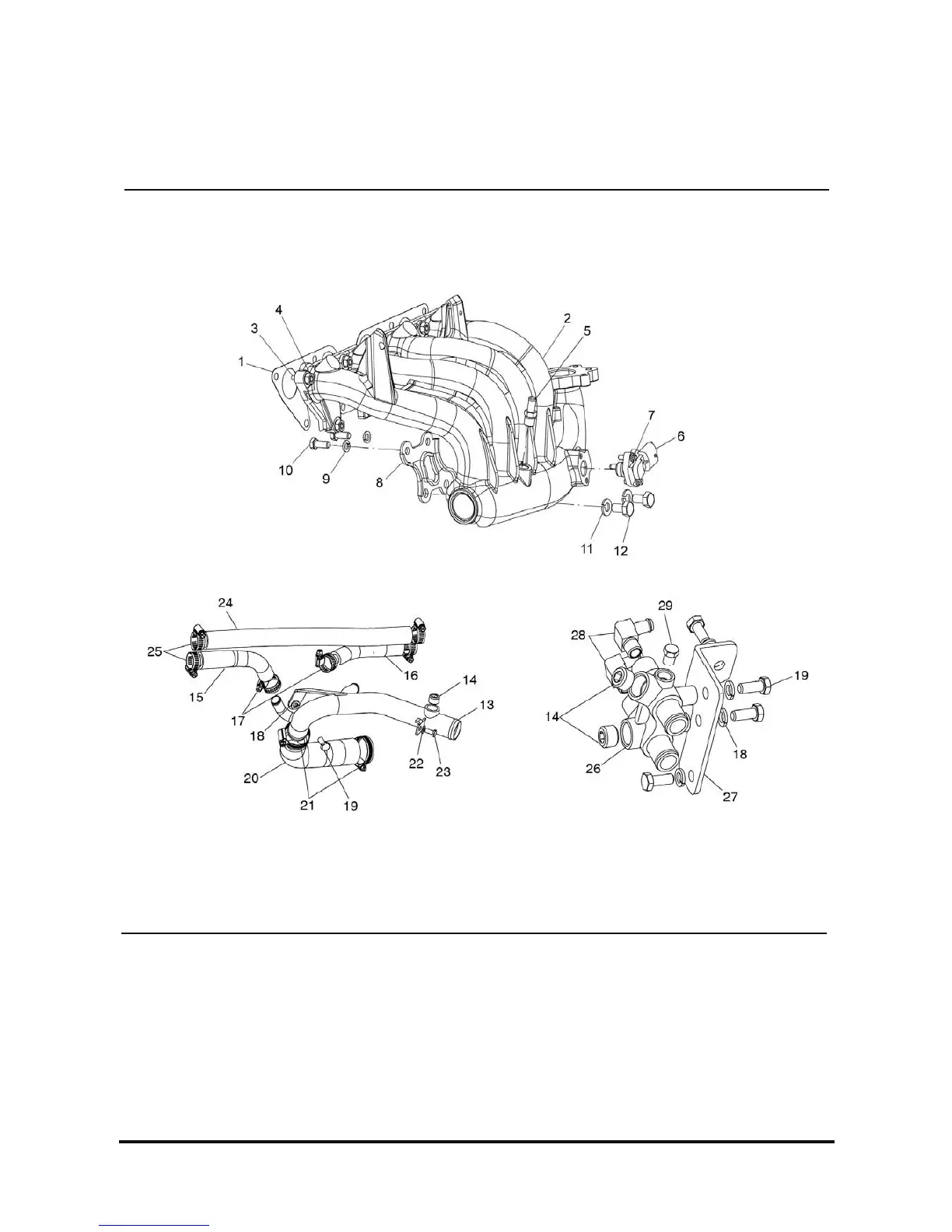 1) Gasket 2) Intake Manifold Assy 3) Stud Bolt 4) Nut 5) Fitting