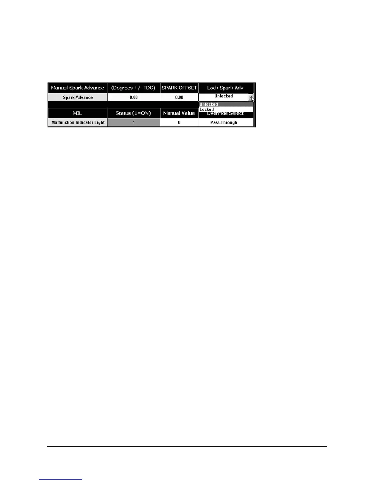 advance through the SECM at the fixed value. The Lock Spark Adv., box will turn red when in manual override