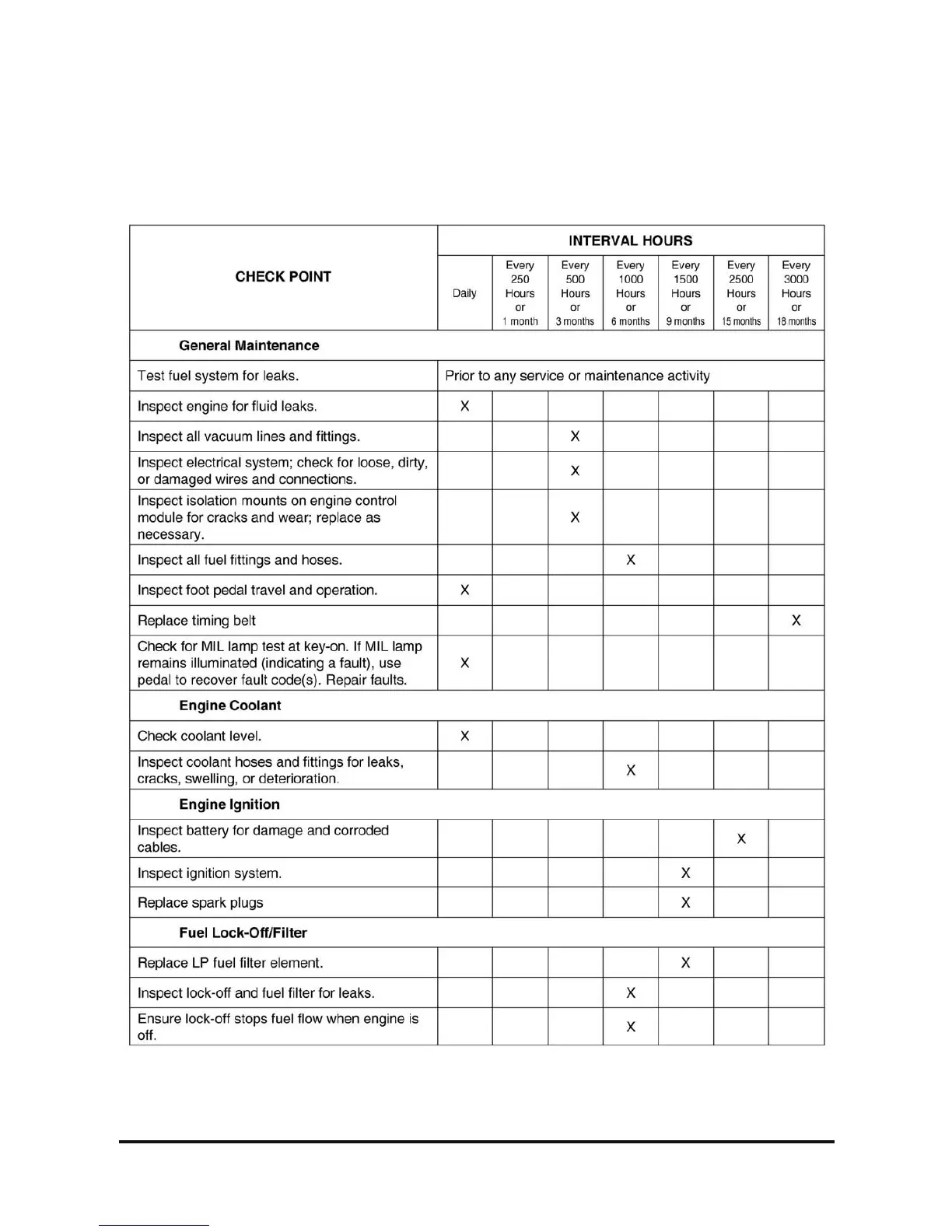 standards. Use of non-compliant LPG fuel may require more frequent service intervals and will disqualify the