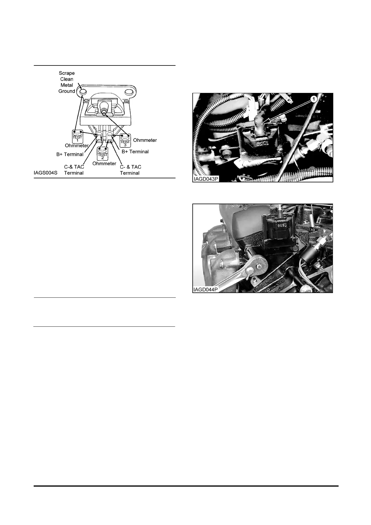 terminals and ground (coil-mounting bracket). On