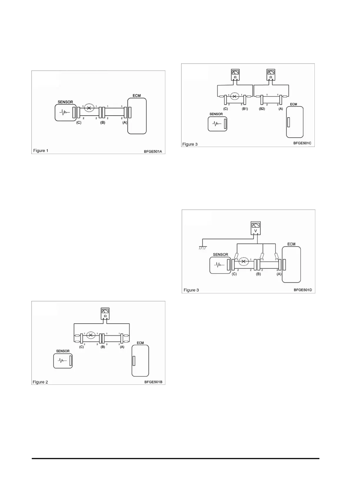 a. Disconnect connectors (A), (C) and measure