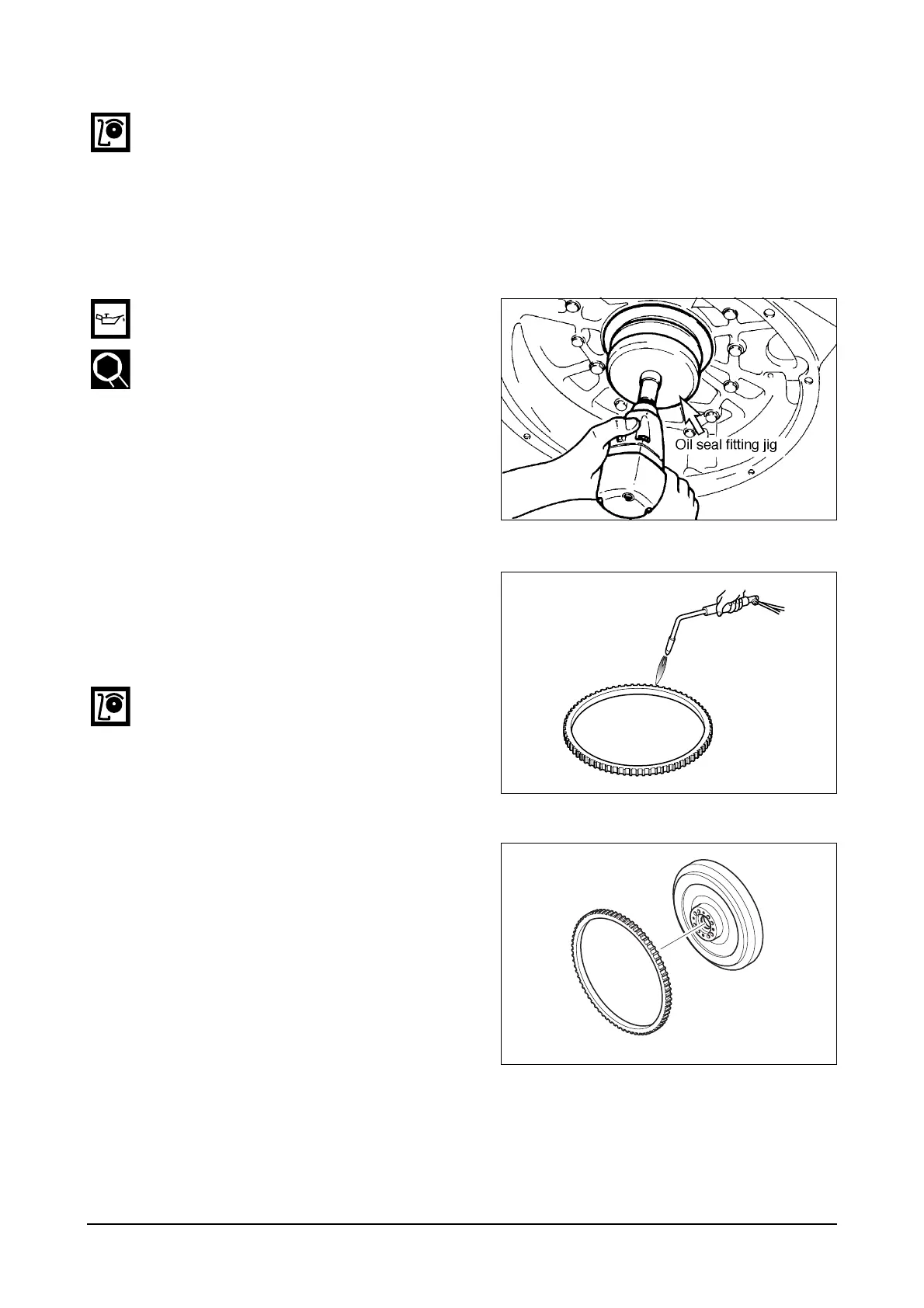 The flywheel housing is assembled after the new oil seal was pressed (Coat engine oil over the