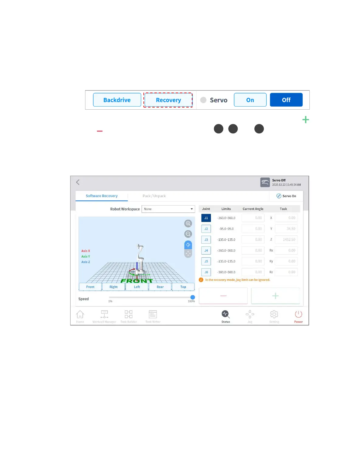 2 Tap each joint button on the right side of the Software Recovery screen, and use