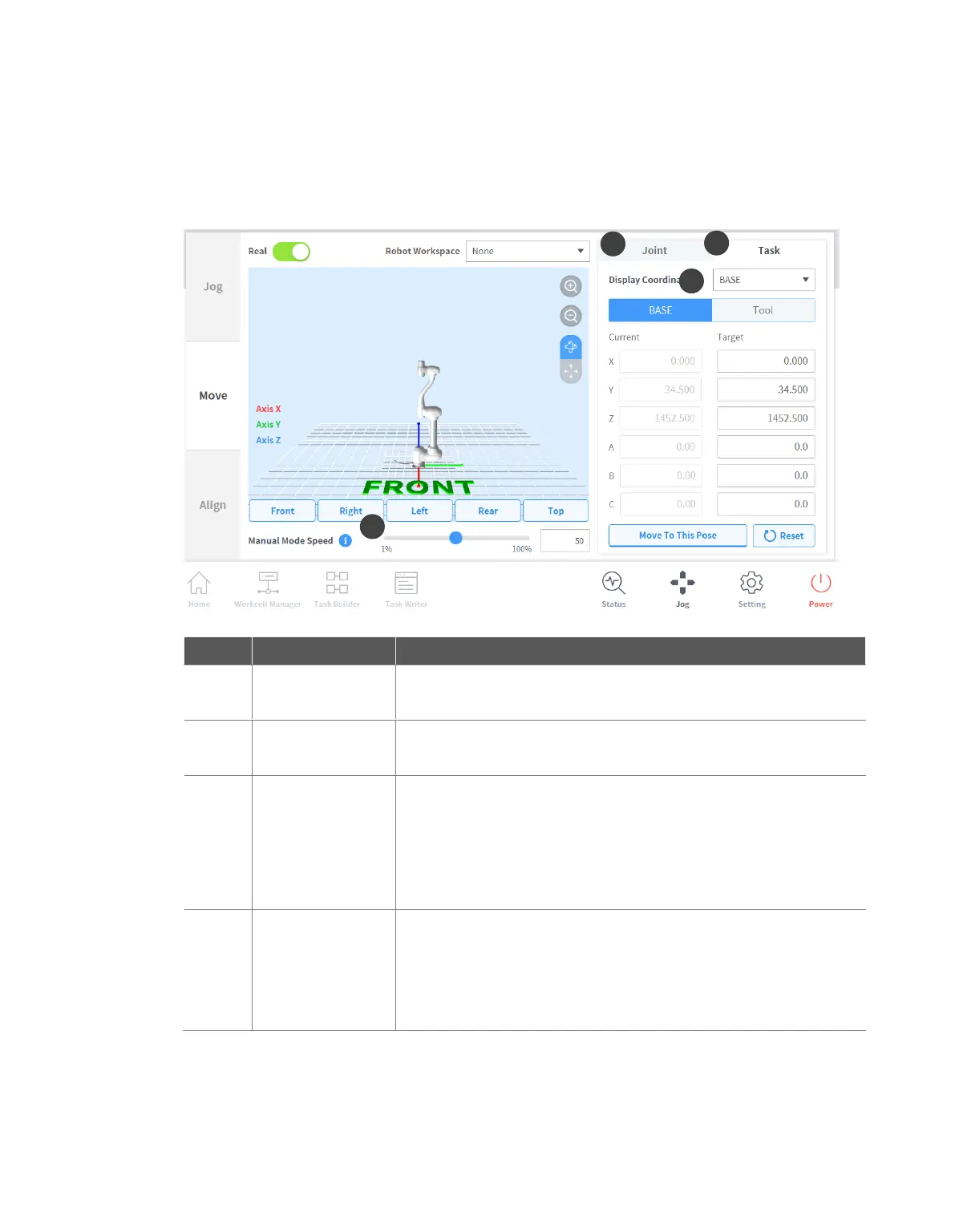 Base: It configures the task coordinate based on the robot