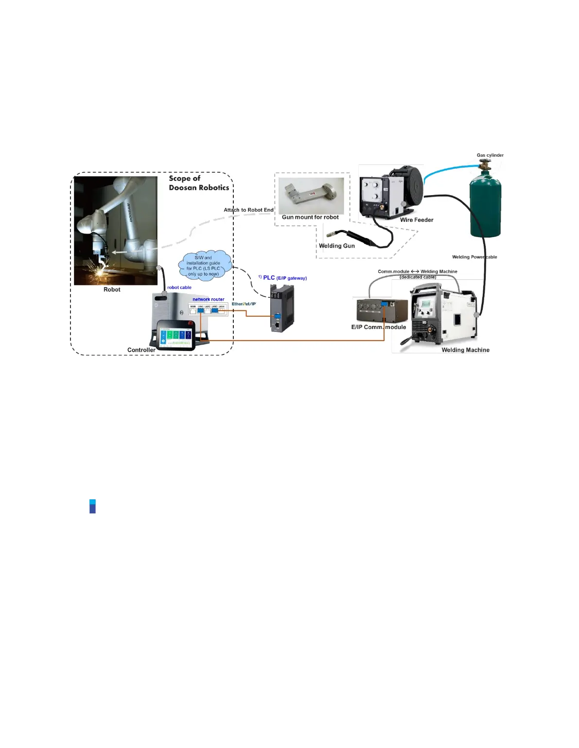 Please refer to the welding technical note provided by the Doosan Robotics Robot LAB for detailed