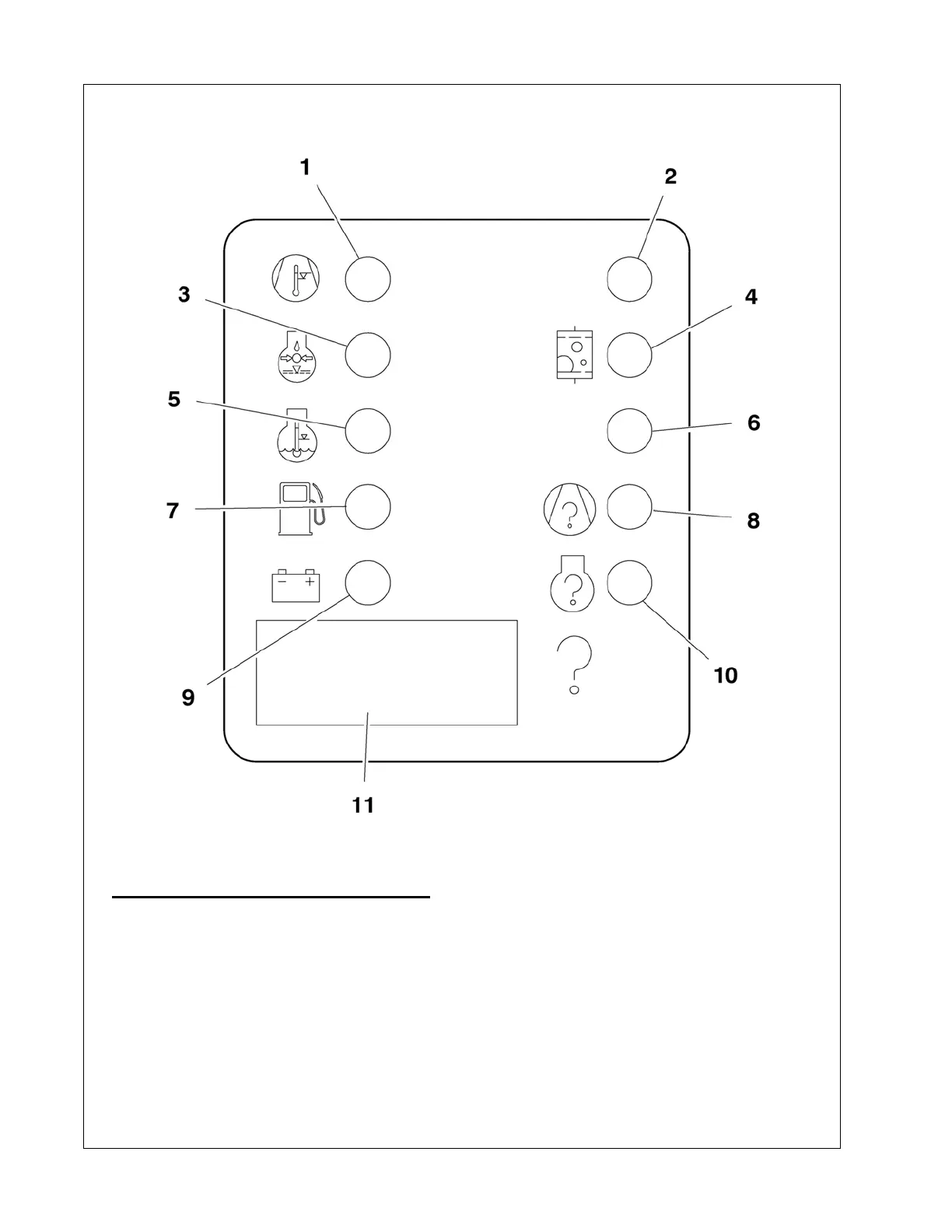 3. Low Engine Oil Pressure: Fault indicator lamp. Indicates shutdown due to low
