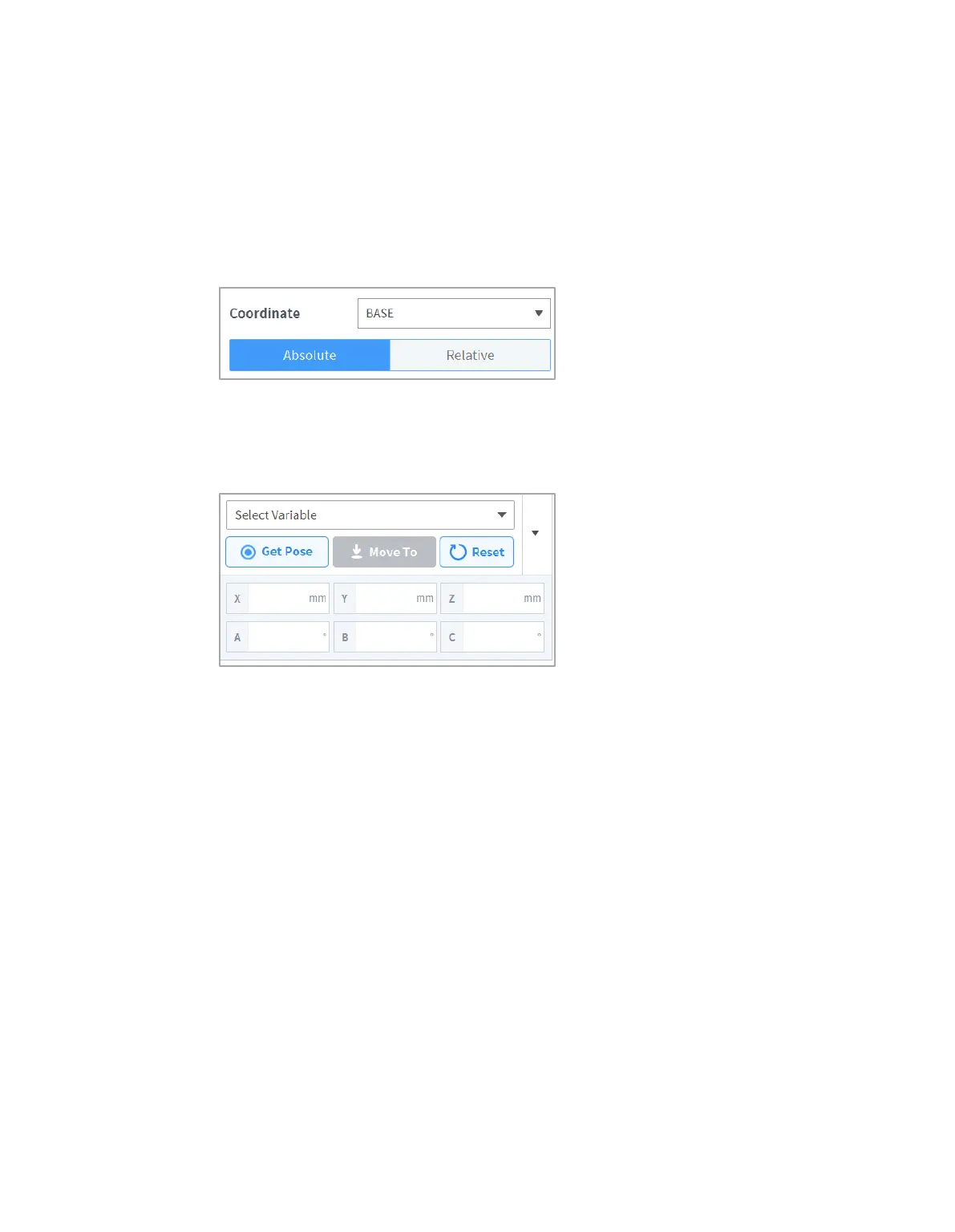 1 Select the type (Absolute, Relative) of reference coordinate and coordinate value.