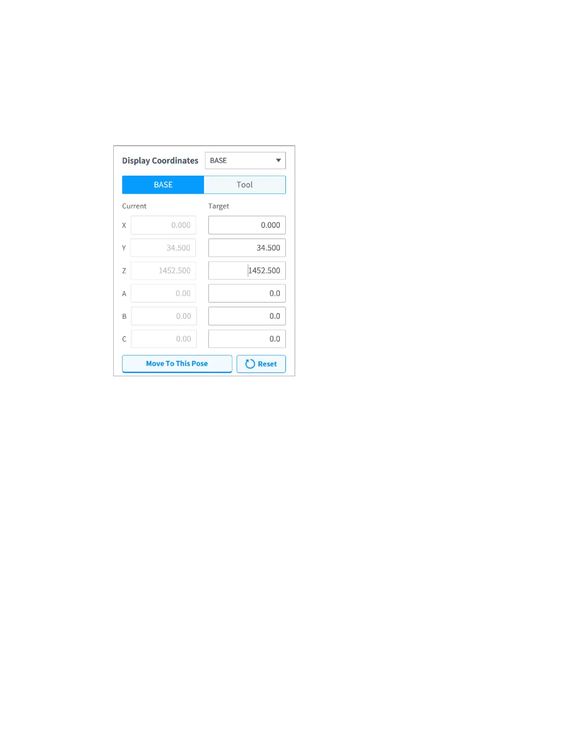 4 Tap and hold the Move to Corresponding Pose button to go to the set coordinate.