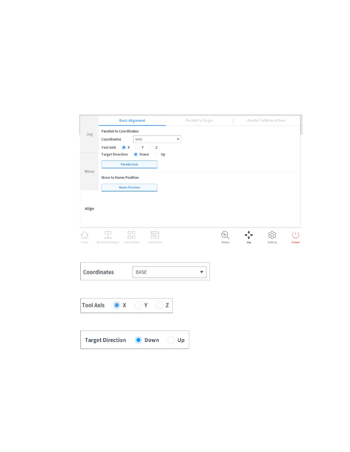 the Base/World Coordinates axis, making it is easy to specify a teaching pose. To perform teaching