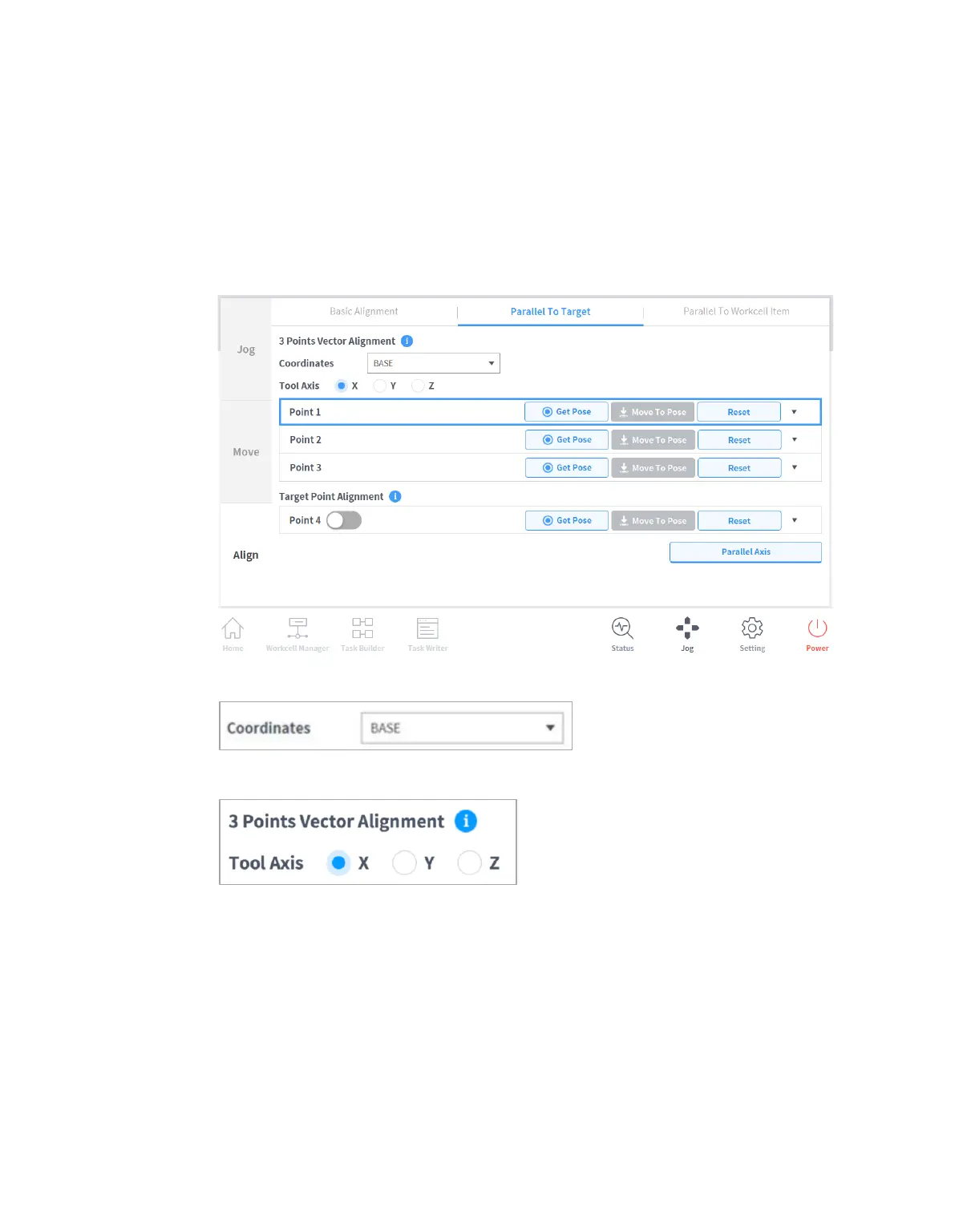 1 Select the Align tab and select Parallel To Taget tab.