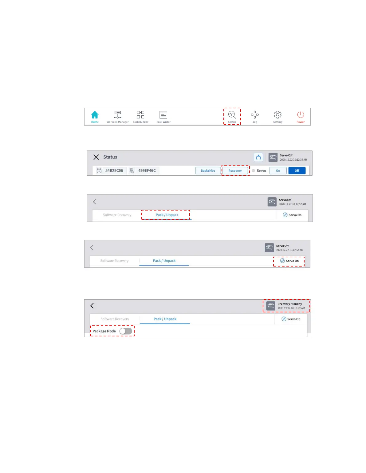 "Safety Off" to "Recovery Standby." Tap the Packaging Mode toggle button on the Packaging