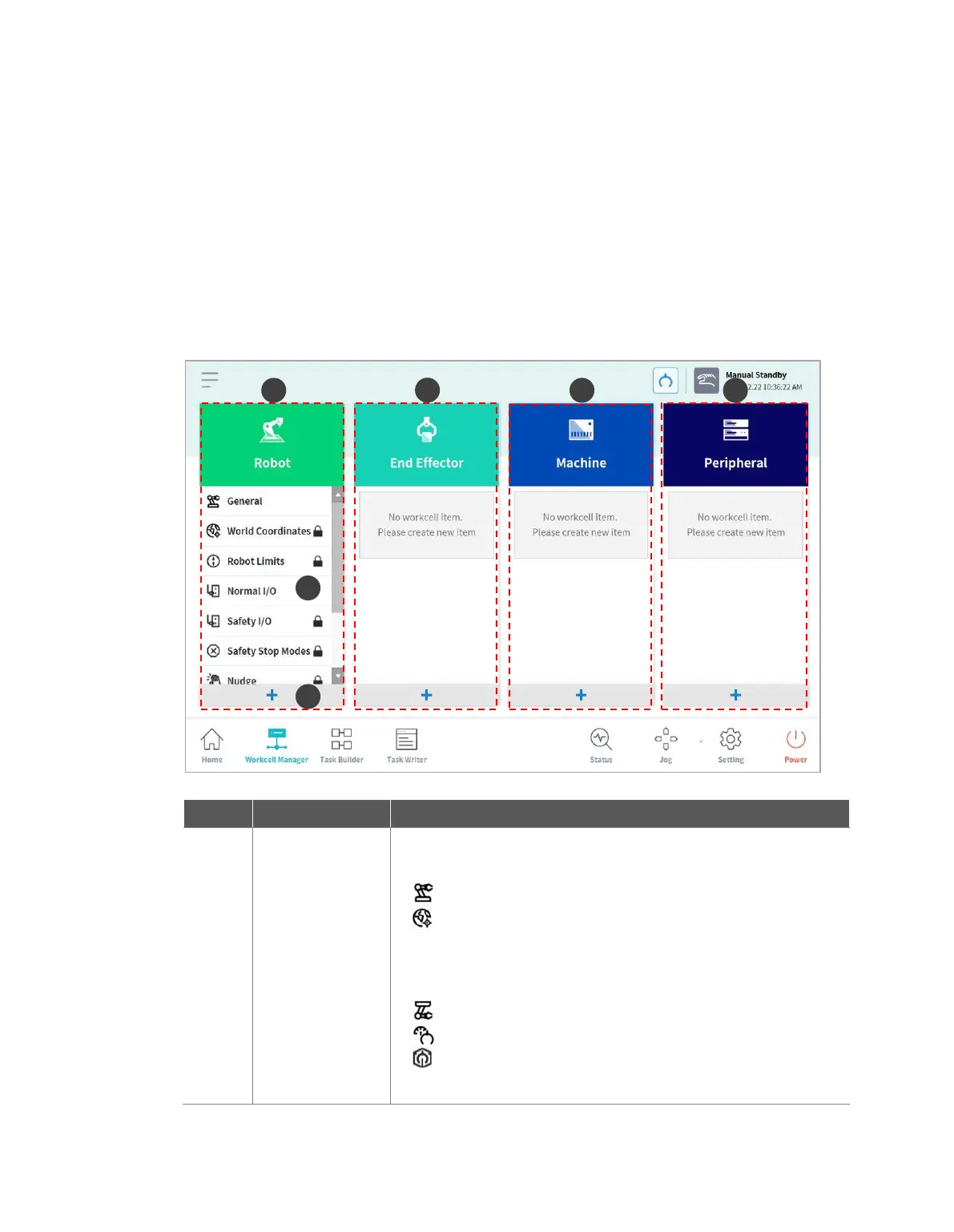 The following screen appears when the Workcell Manager in the main menu is tapped.