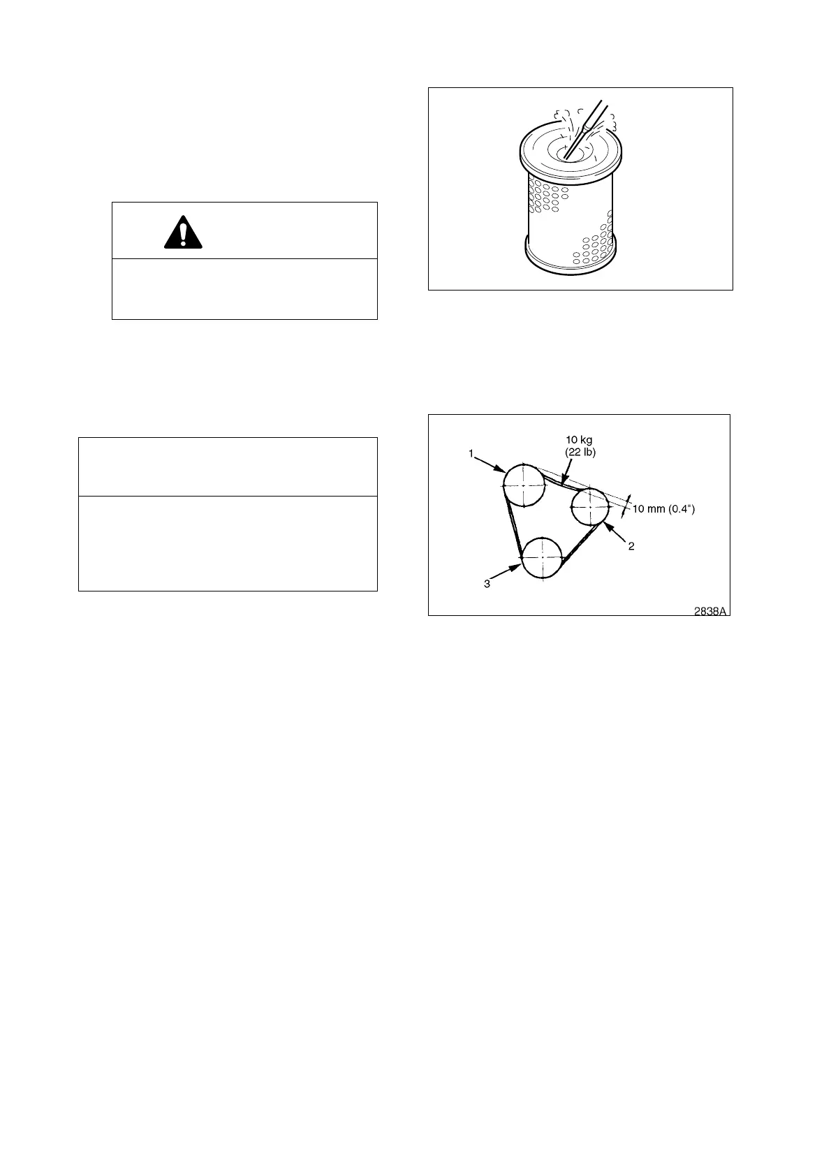 deflect 10 mm (0.4 in). If belt deflects more than this, loosen control link and move idler pulley (2) to