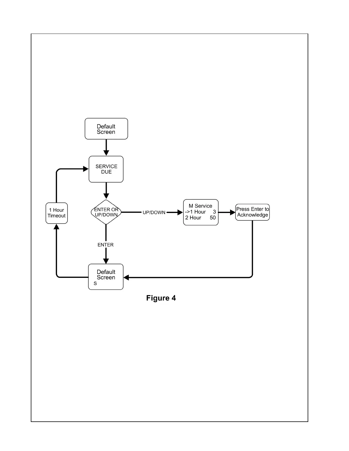 unitreturnstothedefaultscreen.Ifserviceisbetween5and0hoursoritremainsat0hours,