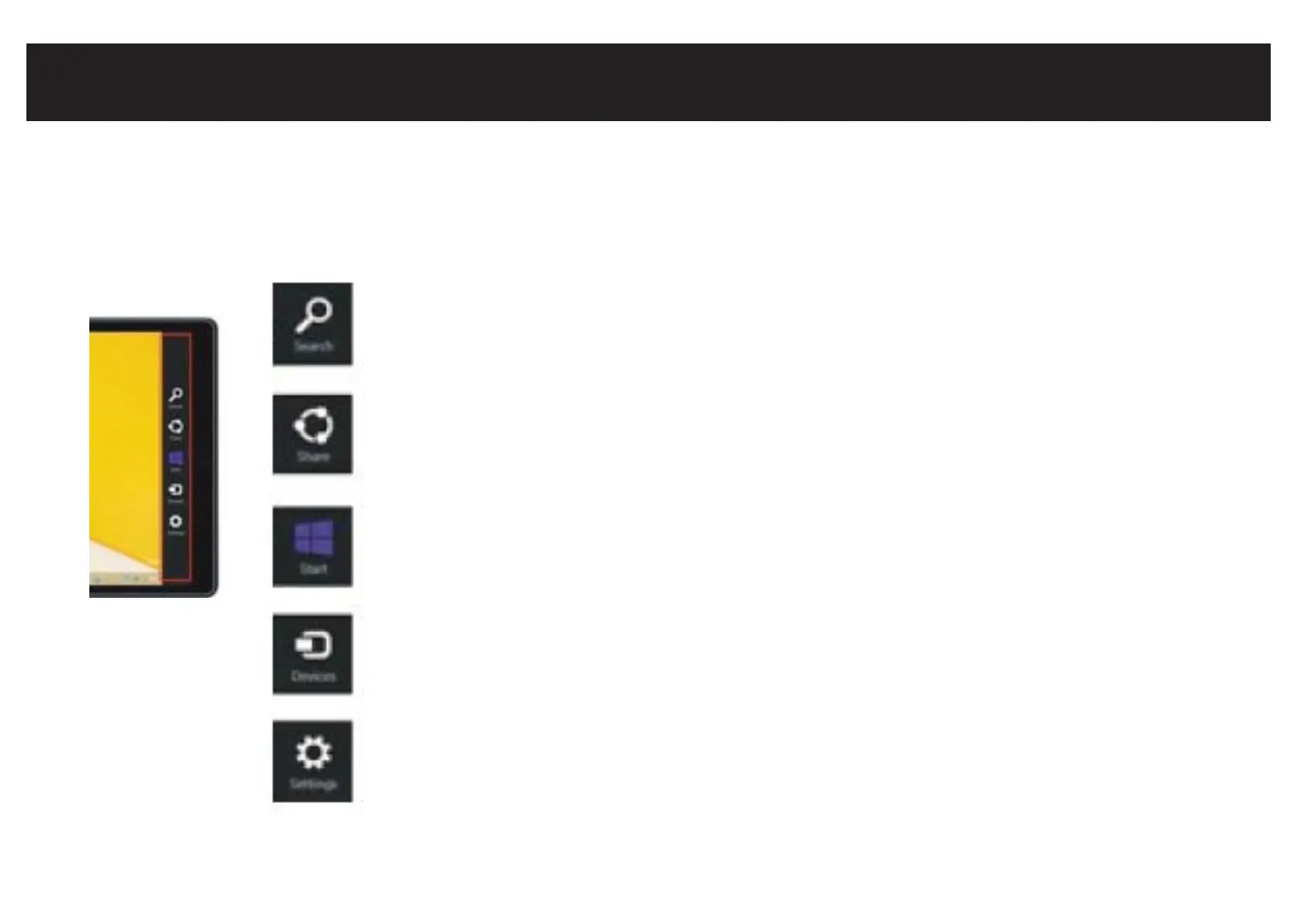 Charm Menu Column - Search, Share, Connect, Settings