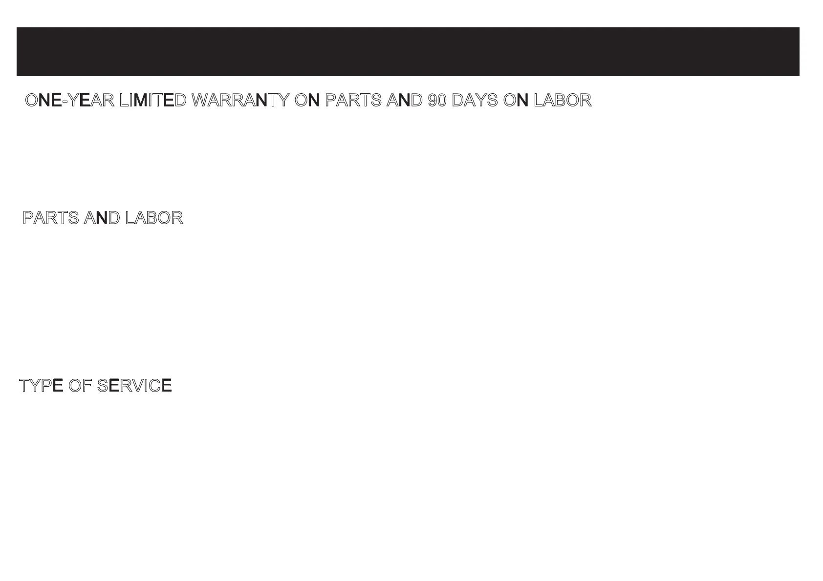 ONE-YEAR LIMITED WARRANTY ON PARTS AND 90 DAYS ON LABOR
