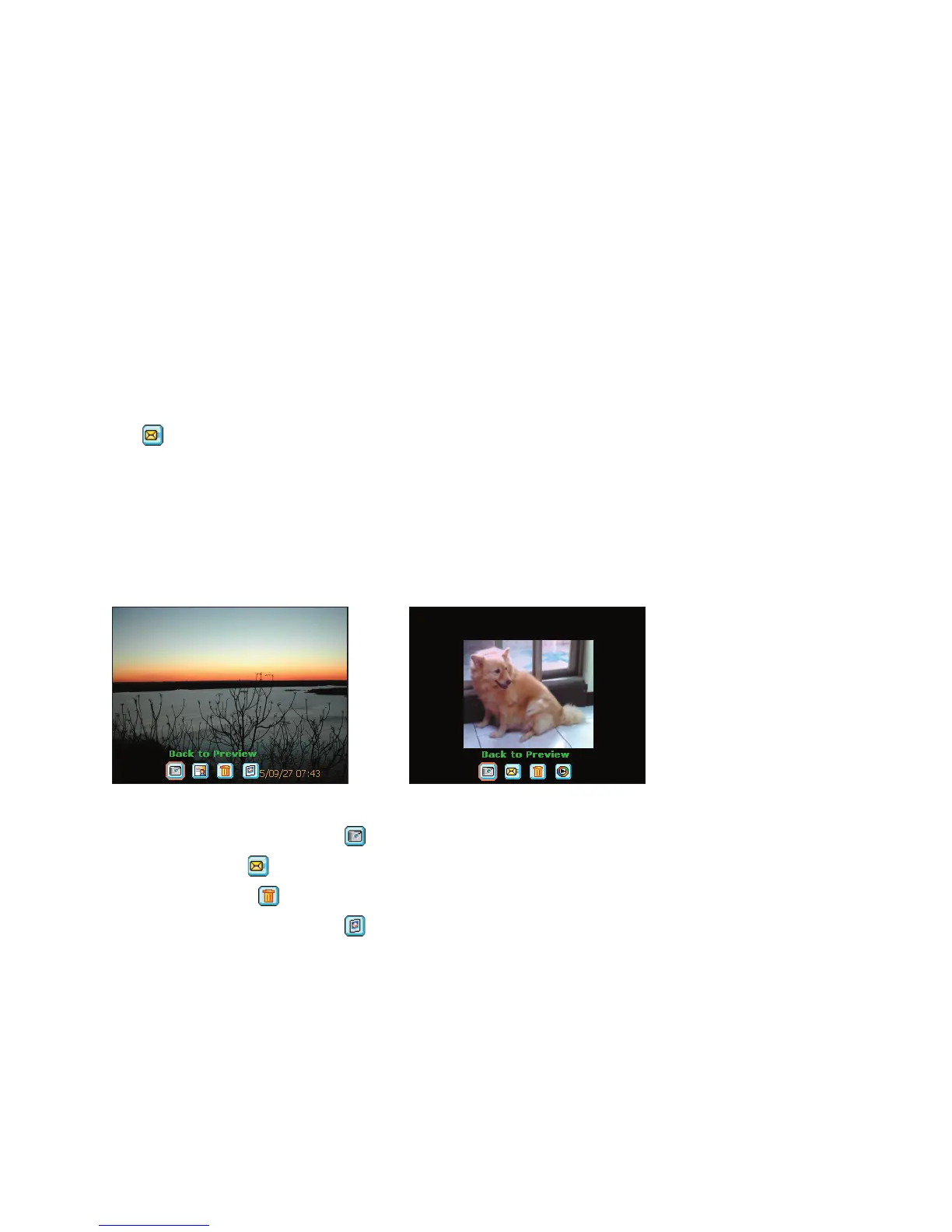 Review screen. In addition, you can send the image or video clip through e-mail, or delete it