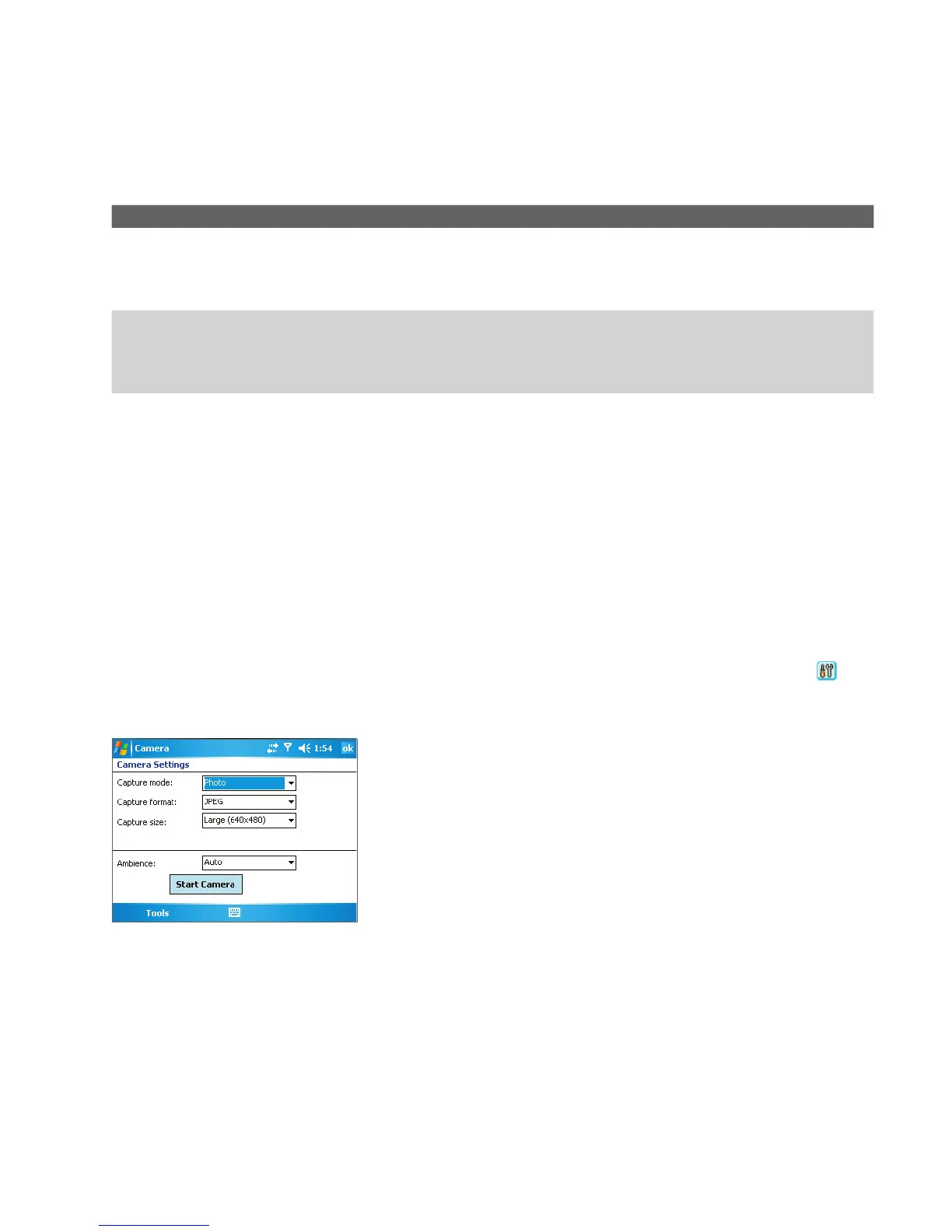 to access the Camera Settings screen. The Camera Settings screen allows you to configure