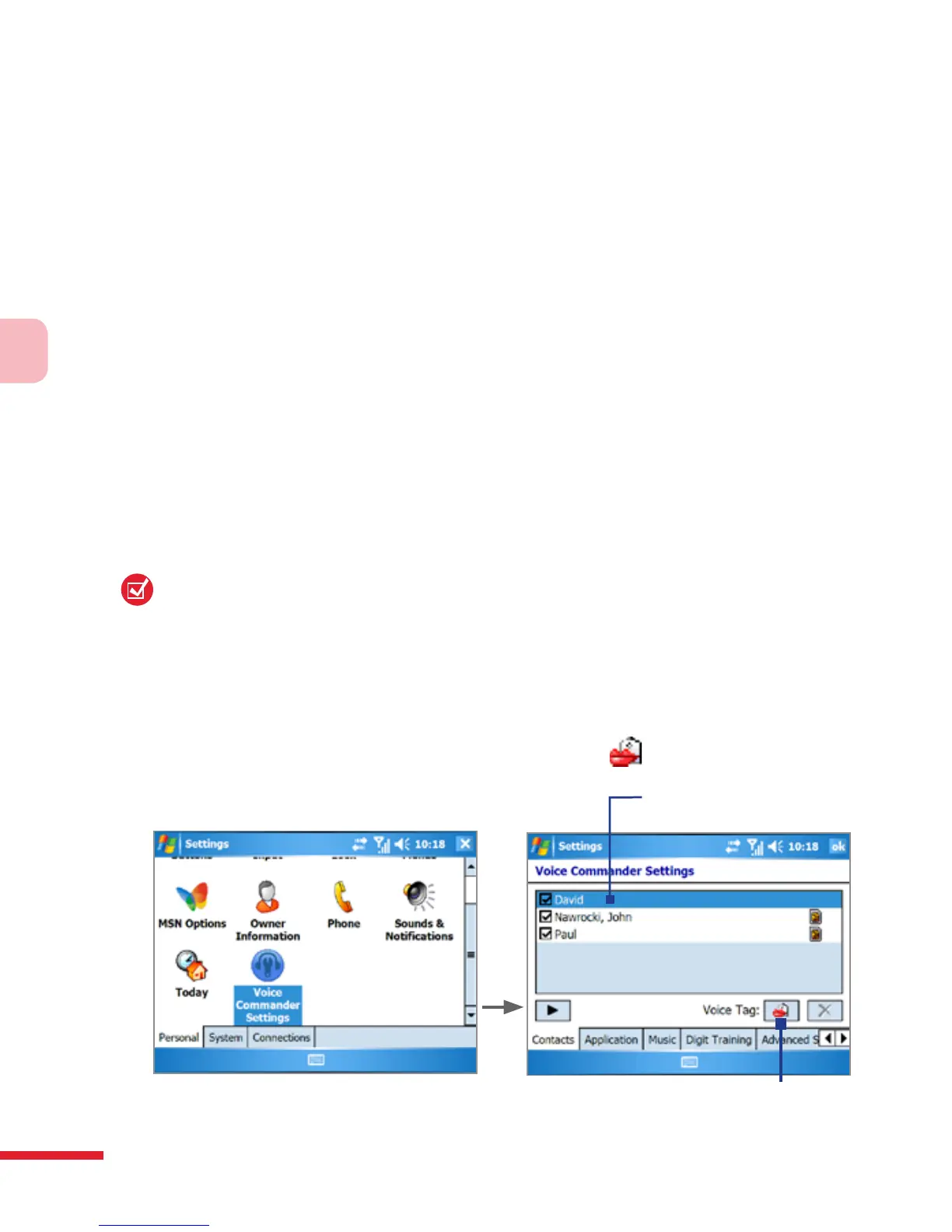 1. Tap Start > Settings > Voice Commander Settings