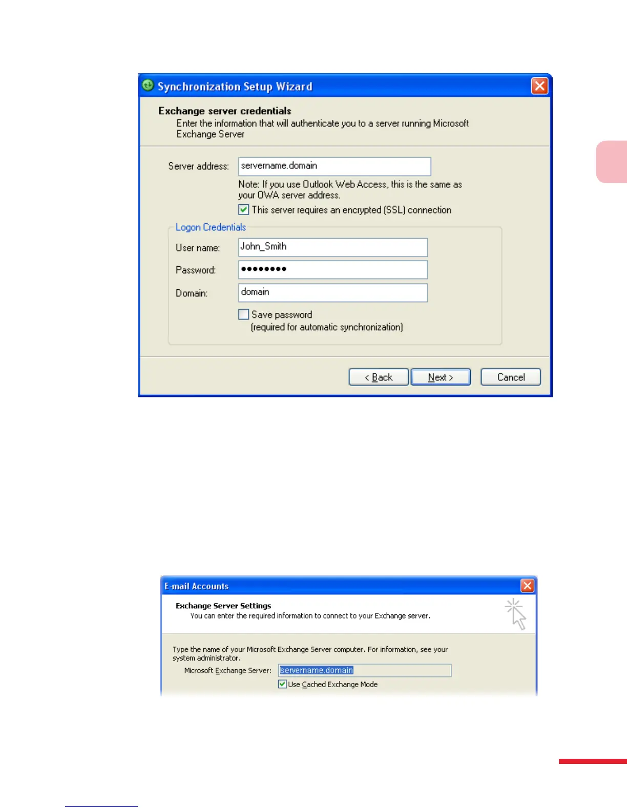d. On the Exchange Server Settings screen, you will see the Exchange