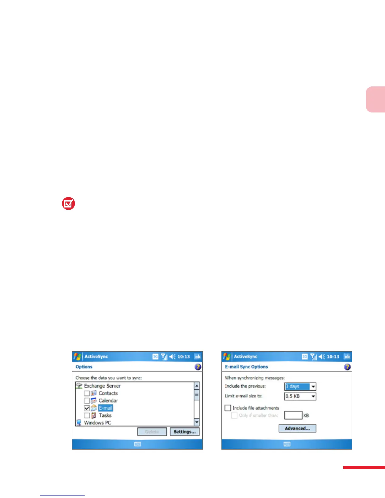 3. Select the E-mail information type, and tap Settings. On the E-mail
