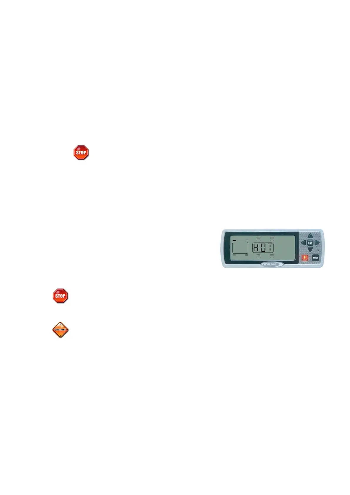 The HOT warning alarm is issued when the sensor senses a temperature that is greater
