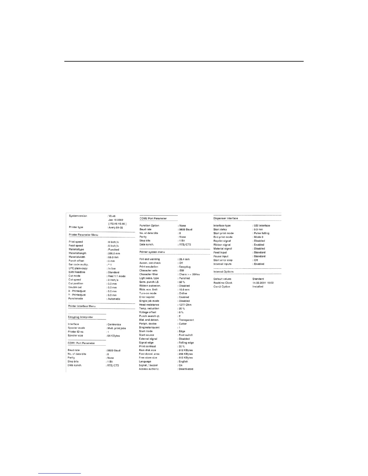 (three pages, see [1]). Which parameters are listed, depends on the printer type.