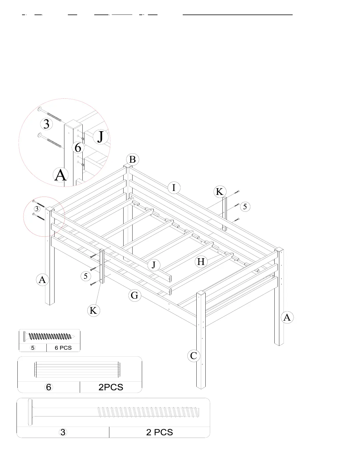 barandas cortas (J) y en la baranda lateral (G) con los tornillos para madera (5). Conecte el otro suporte